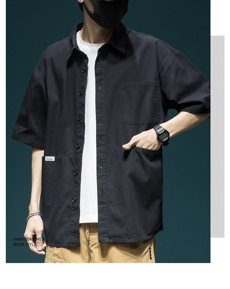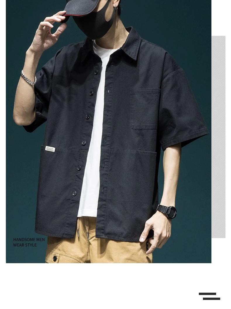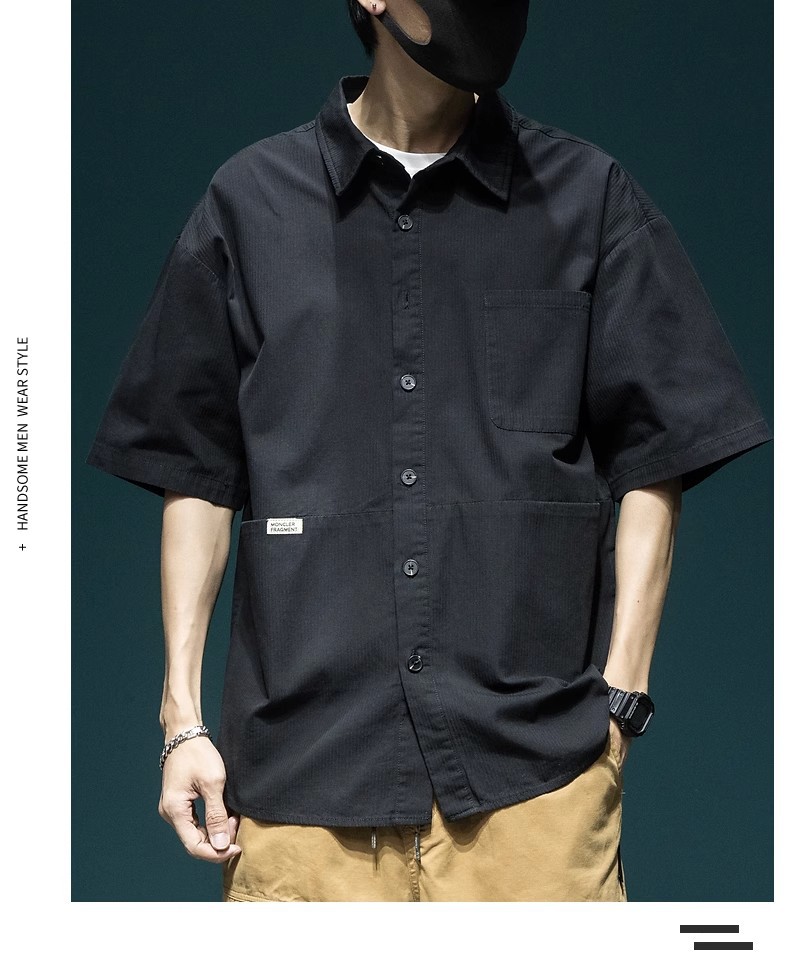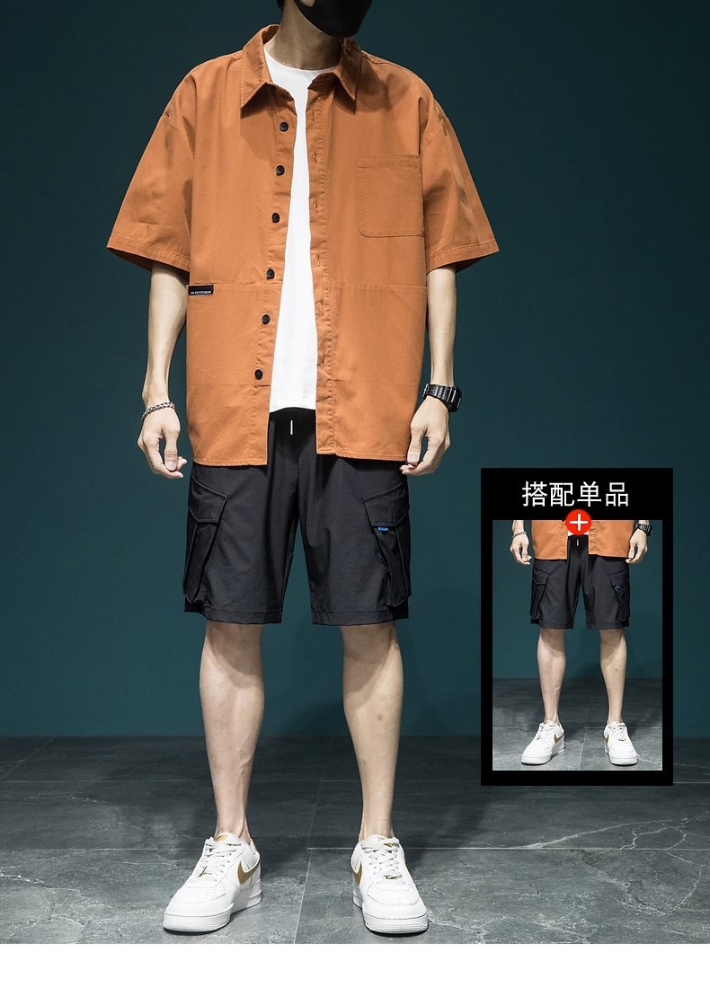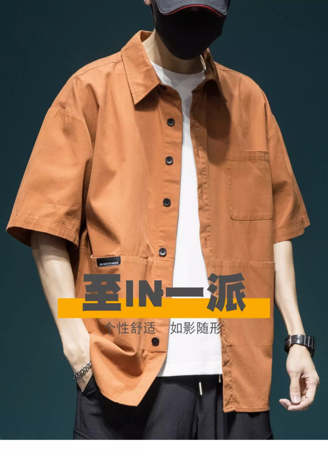 고급 오렌지 일본식 반팔 셔츠 남성용 여름 새 느슨한 플러스 사이즈 작업복 셔츠 푹신한 핸섬 옷깃 탑스토어 가기