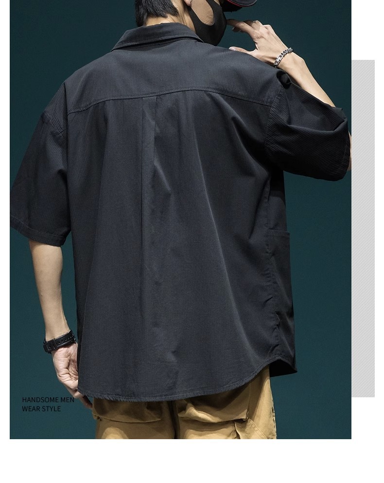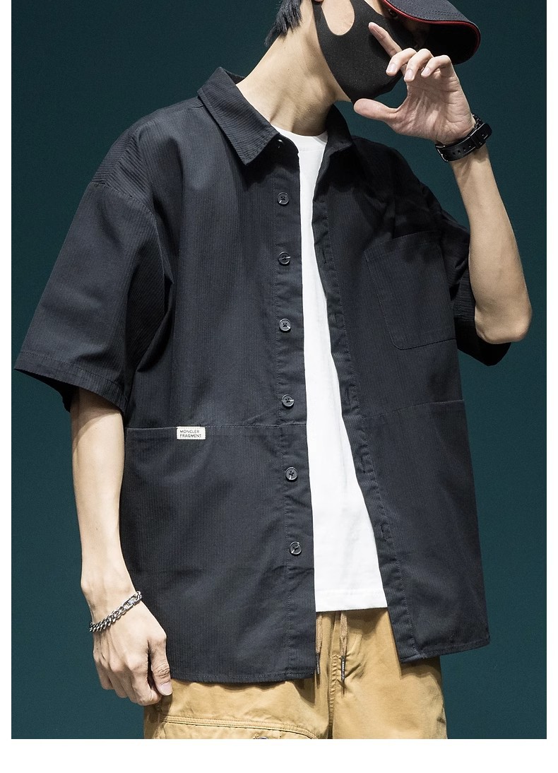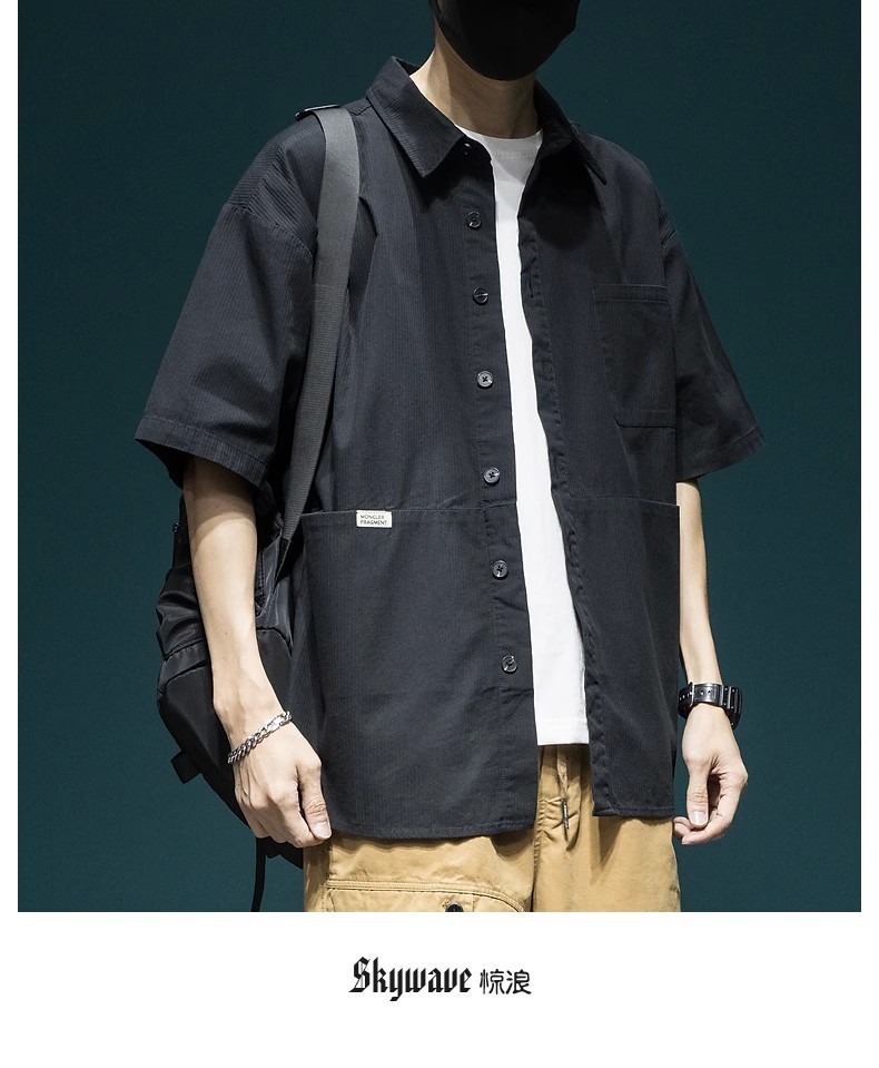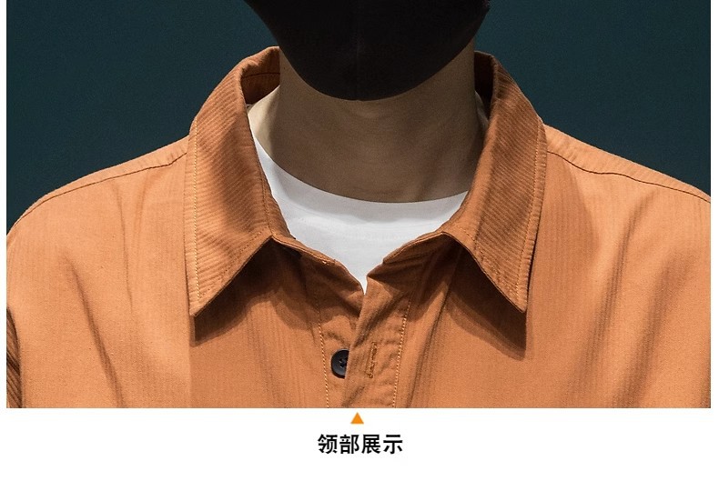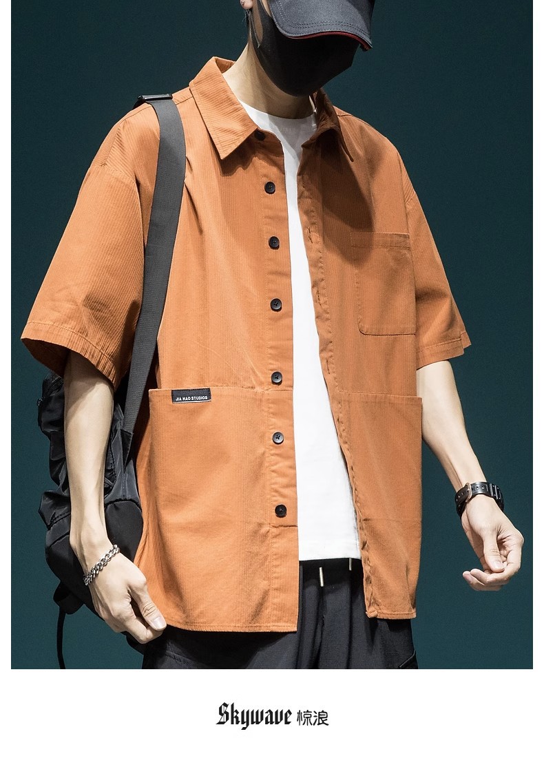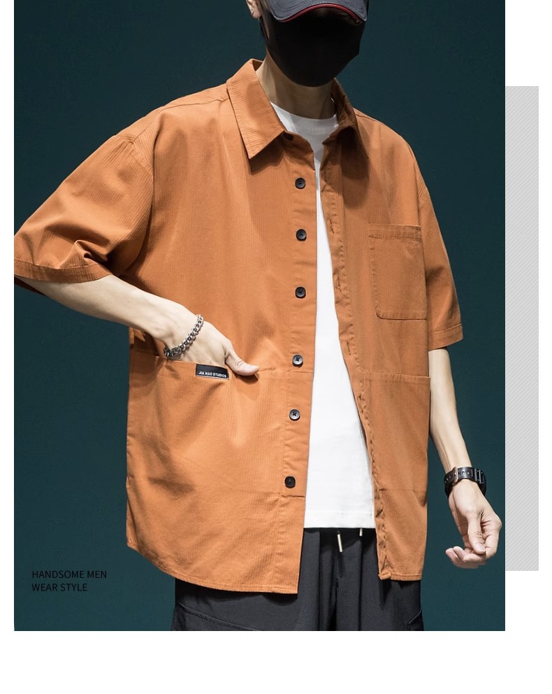 고급 오렌지 일본식 반팔 셔츠 남성용 여름 새 느슨한 플러스 사이즈 작업복 셔츠 푹신한 핸섬 옷깃 탑