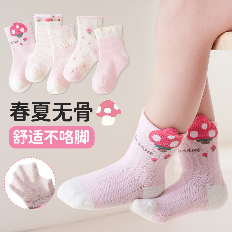 2025 새로운 어린이 양말 도매 메쉬 소년 양말 만화 얇은 뼈없는 통기성 양말 소녀스토어 가기