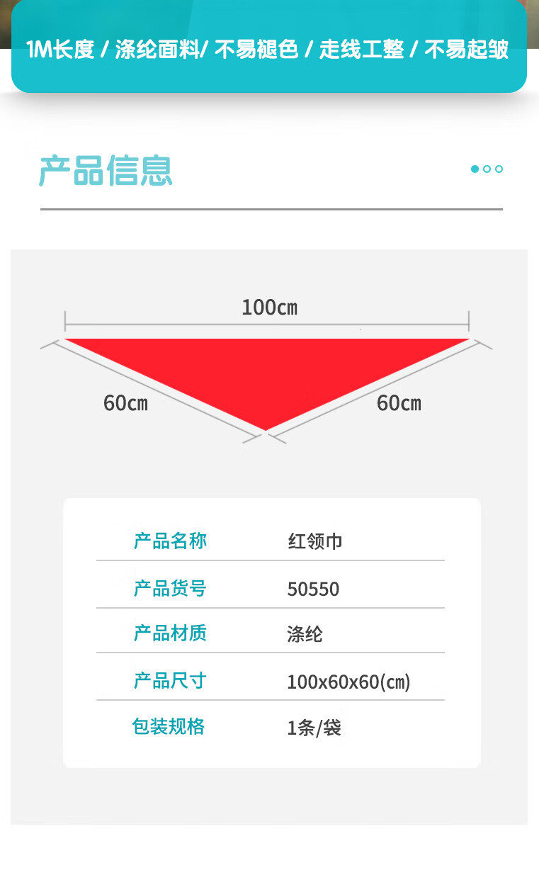 델리 50550 레드 스카프 초등학생 유니버설 코튼 1/1.2 m 레드 스카프 50551 학생 표준 가전