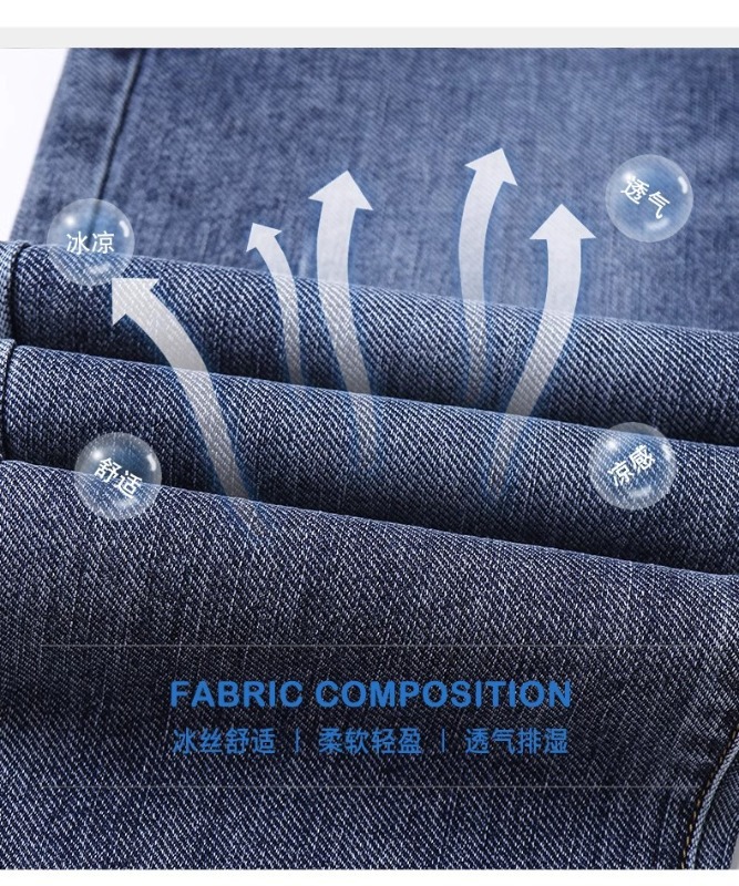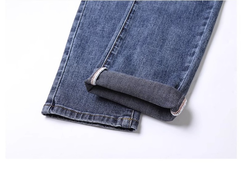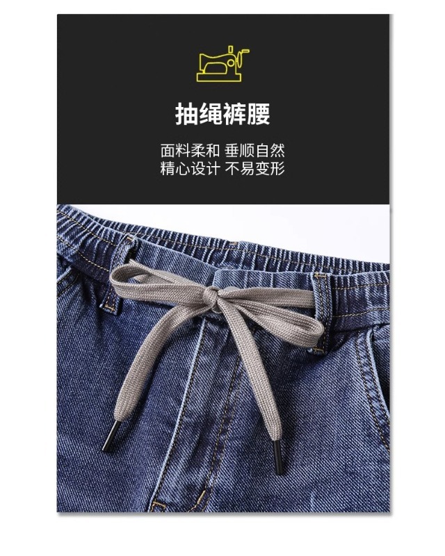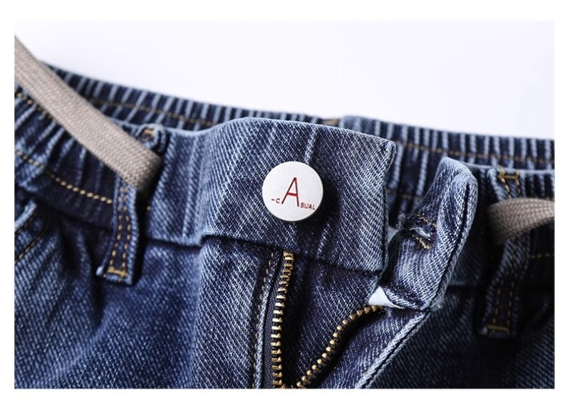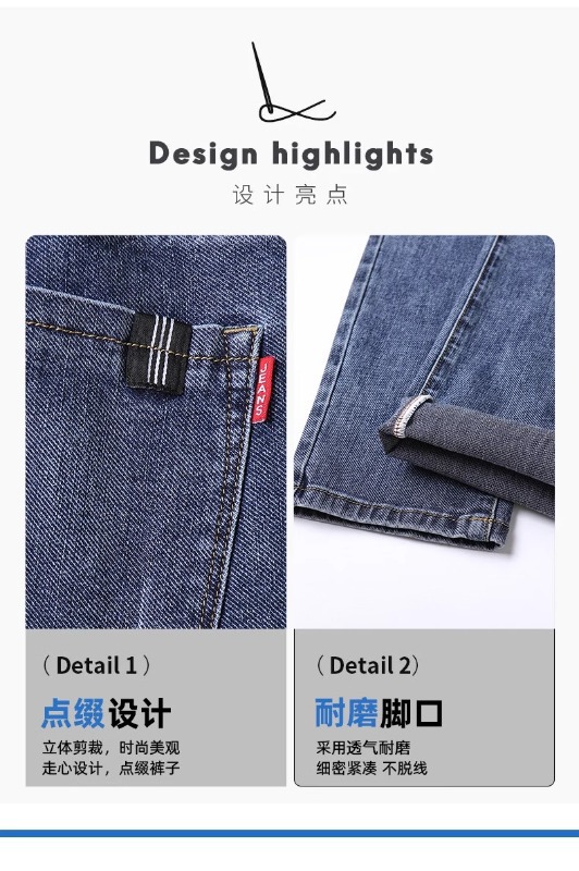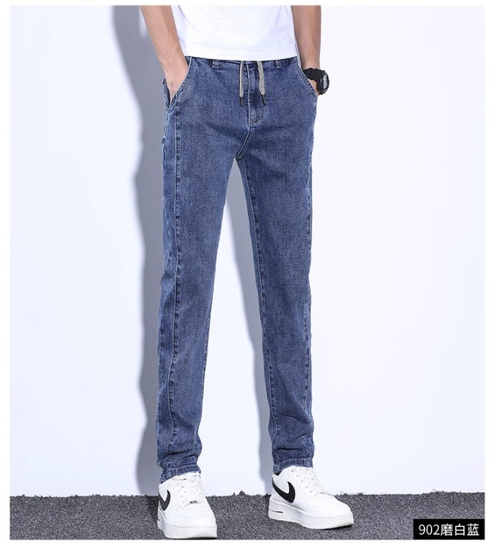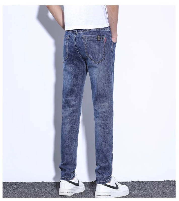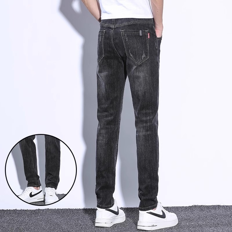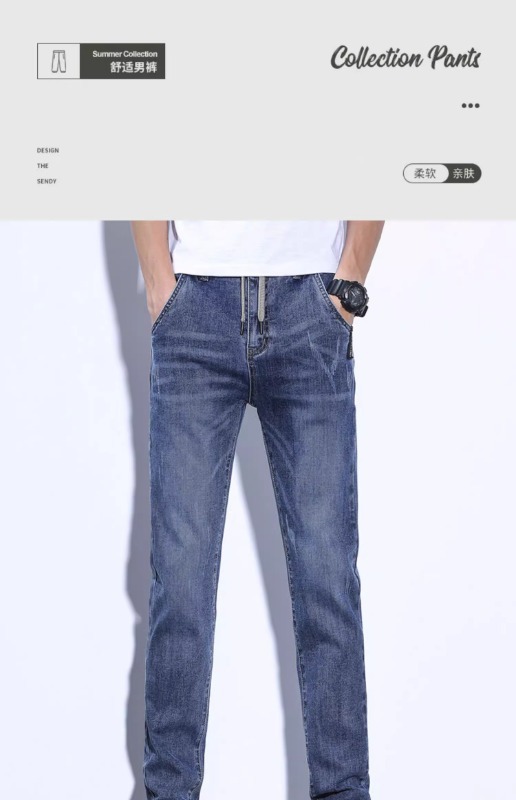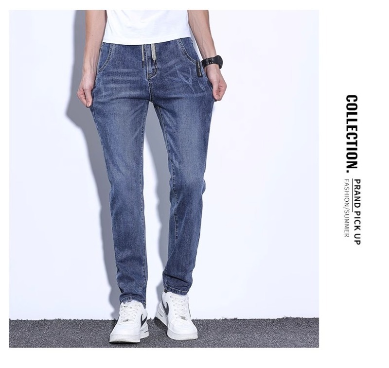 청바지 남성용 캐주얼 슬림 핏 작은 발 탄성 티더 봄과 가을 새로운 높은 텍스트 청바지 탄성 허리 바지스토어 가기