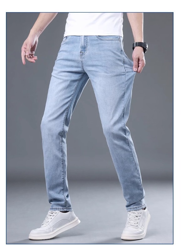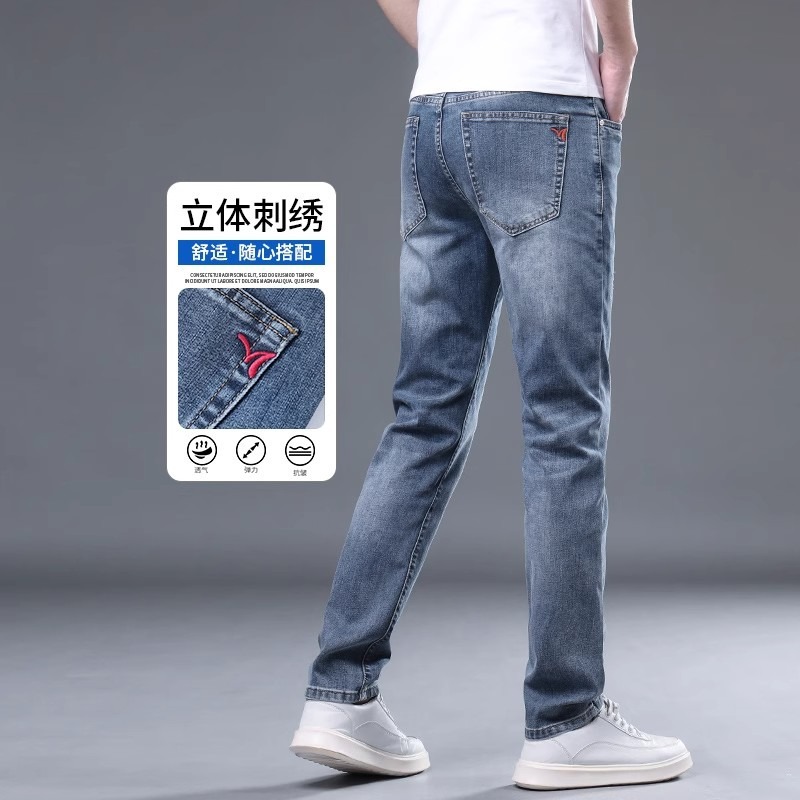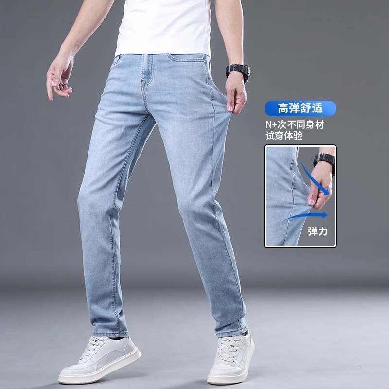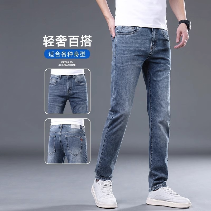 청바지 남자 여름 얇은 스트레치 스트레이트 슬림 바지 남자 2025 새로운 한국식 여름 아이스 실크 캐주얼 바지스토어 가기