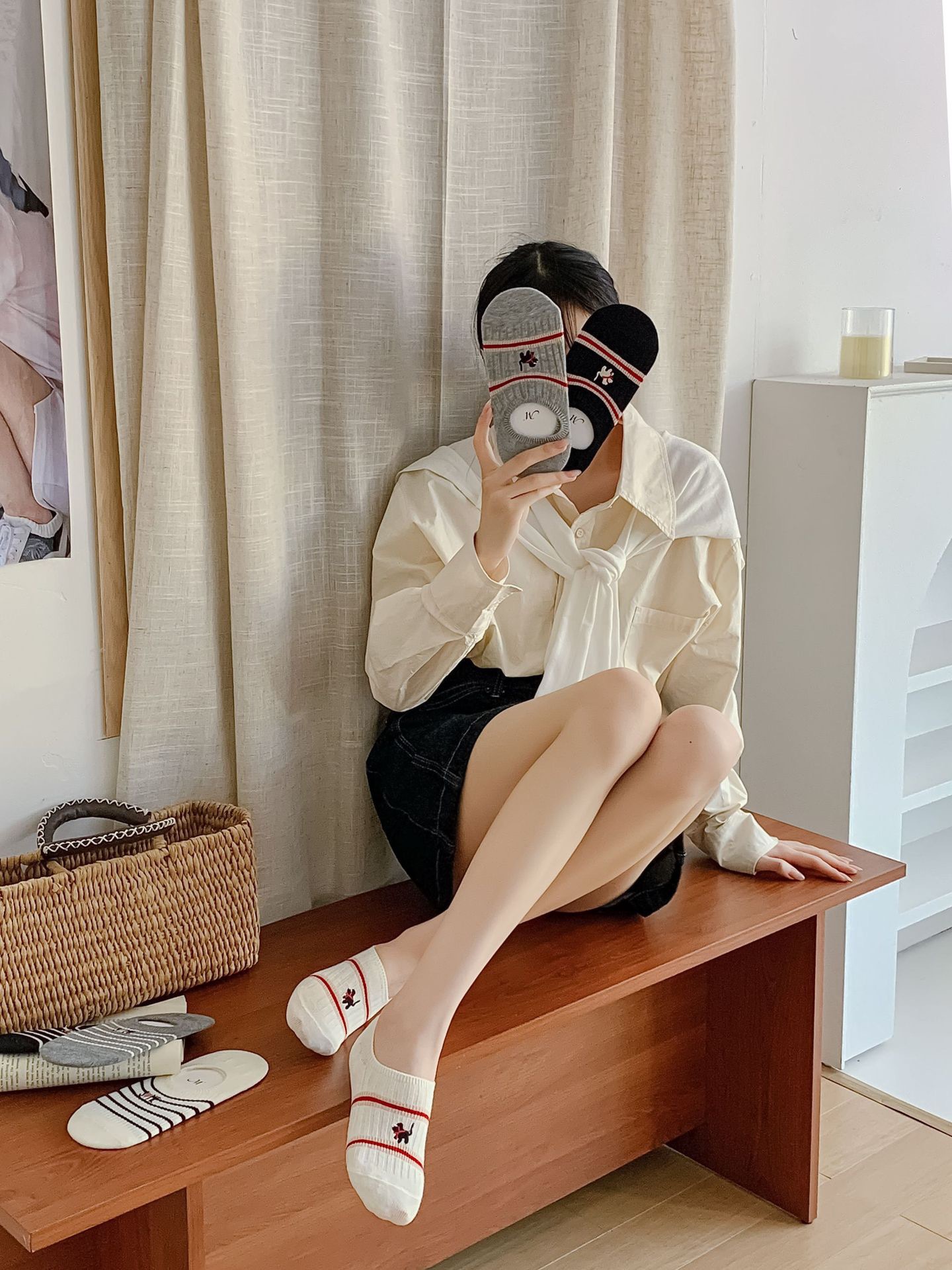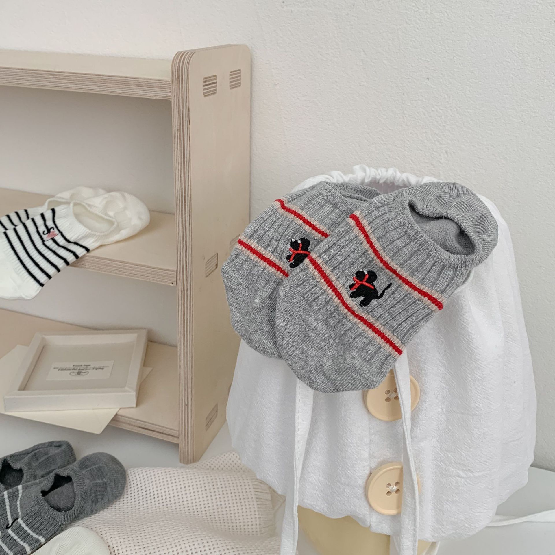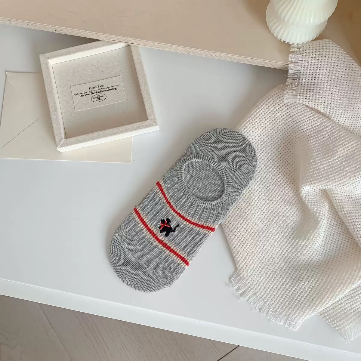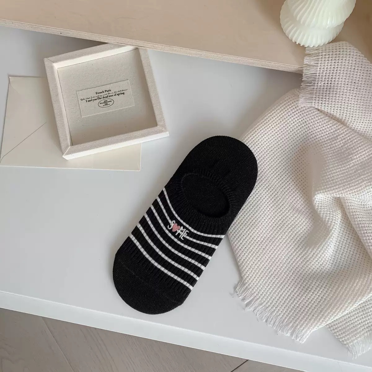 Yuanrun 홈 봄과 여름 대비 컬러 더블 바늘 안티 드롭 힐 보이지 않는 여성 양말 핑크 블루 스트라이프 자수 간단한 올 매치 여름