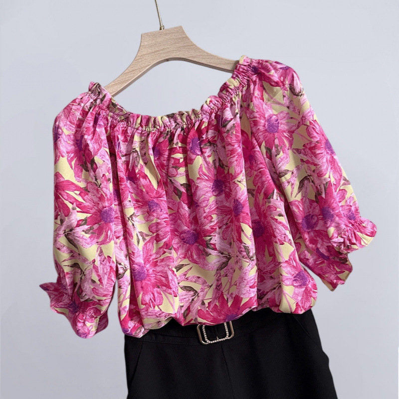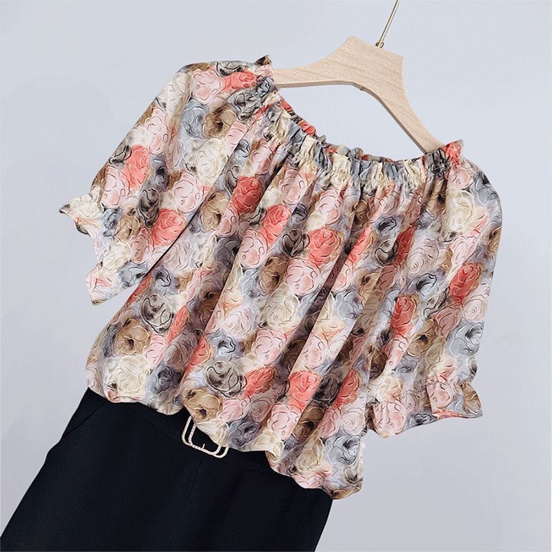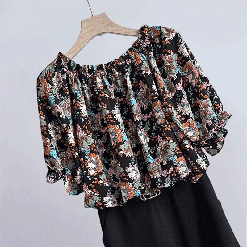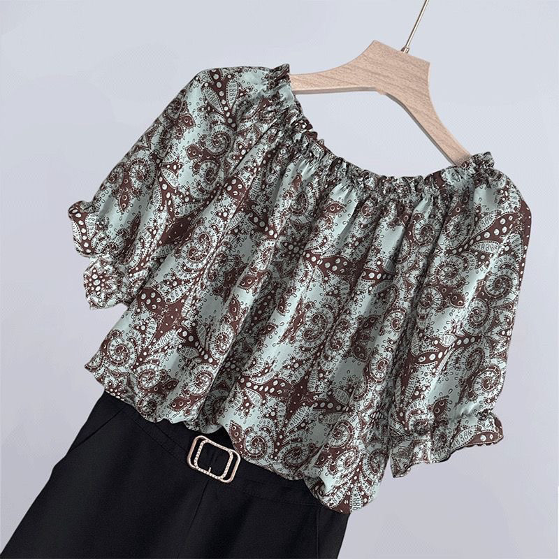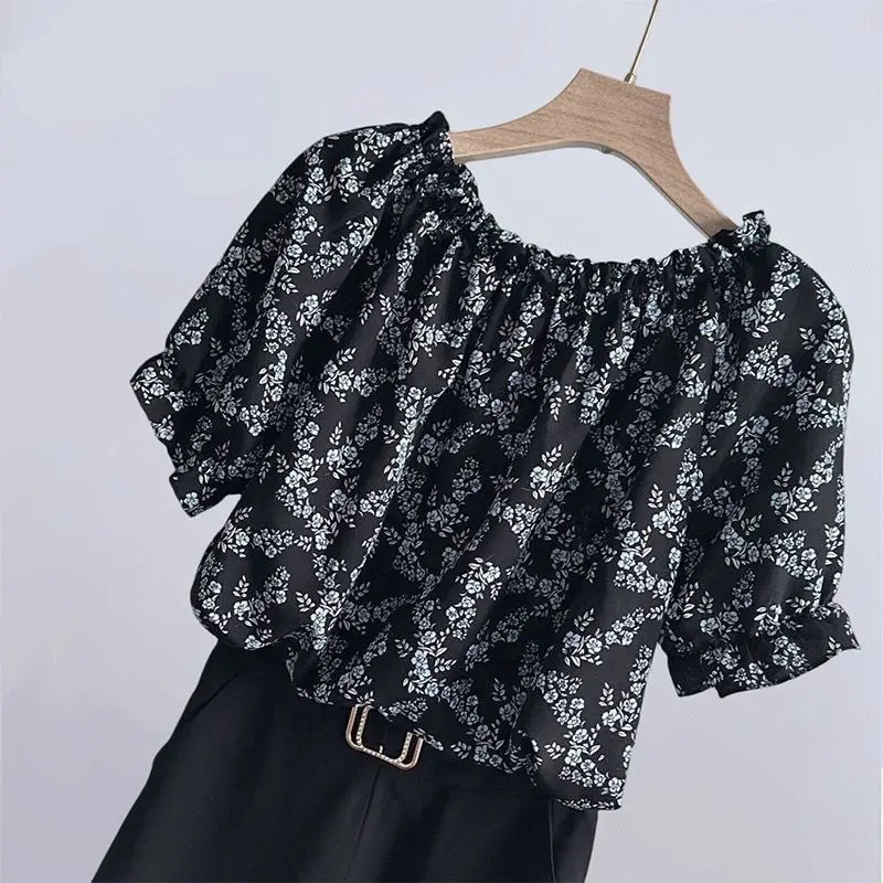 쉬폰 셔츠 2025 여름 새로운 느슨한 올매치 웨스턴 스타일 작은 셔츠 배 덮음 나이 감소 칼라 투웨어 폭발성 탑스토어 가기