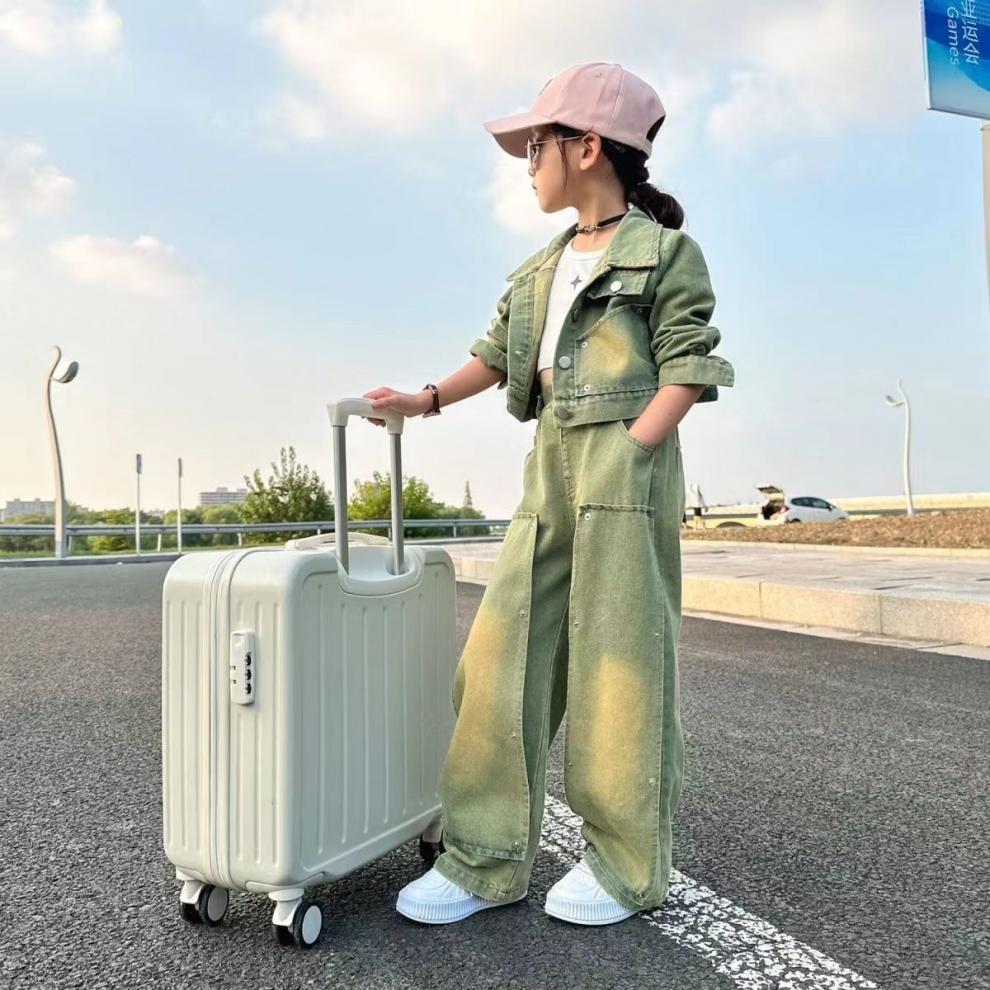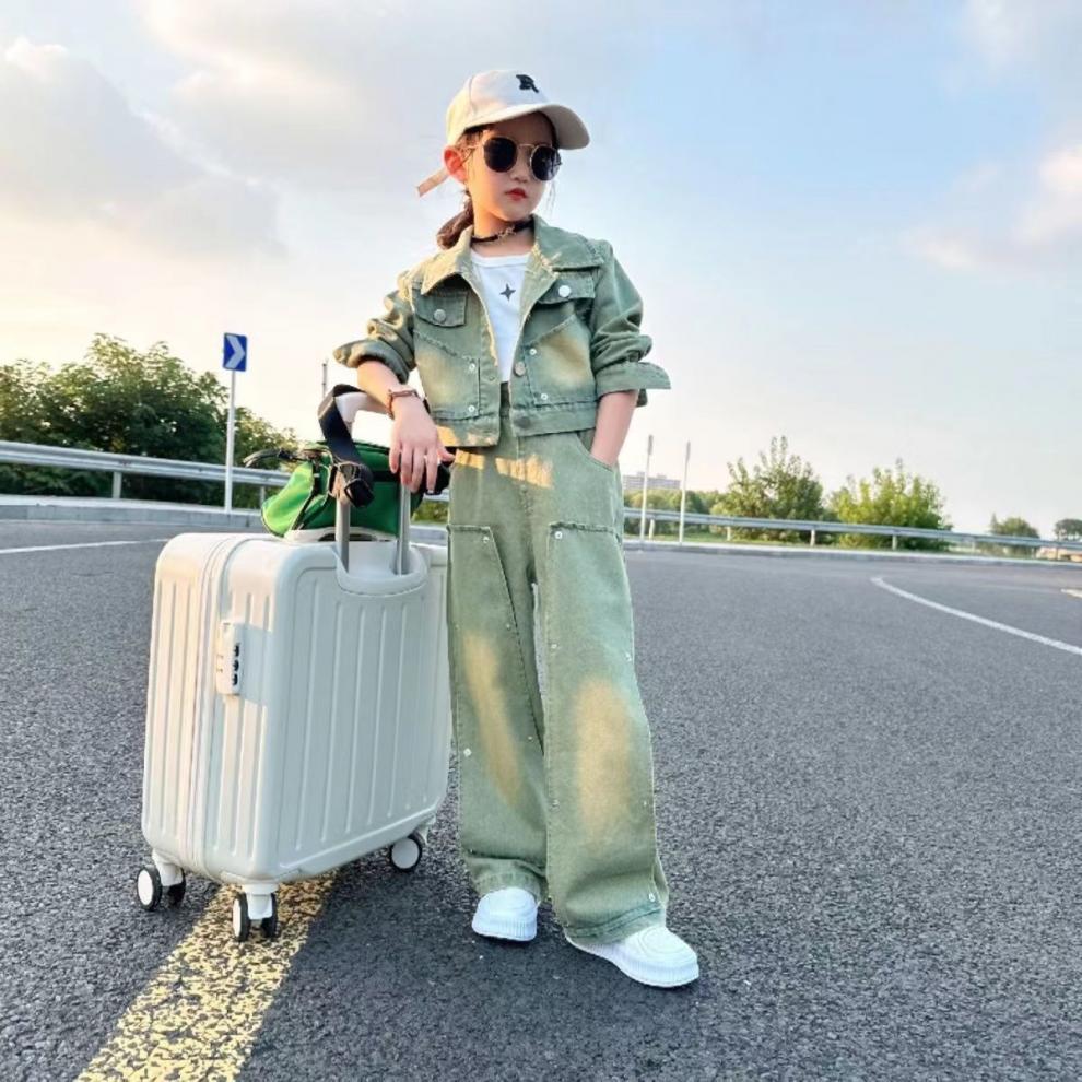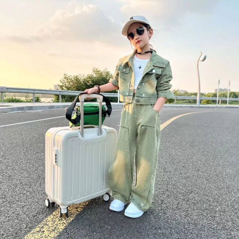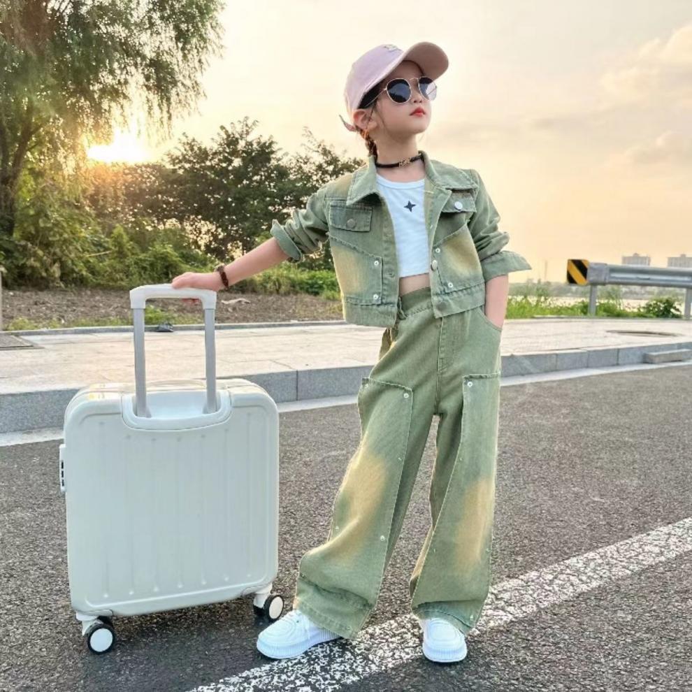 소녀 가을 한국 아동복 데님 세트 봄 가을 새로운 여성의 트렌디 한 레트로 와이드 레그 바지 투피스 세트스토어 가기