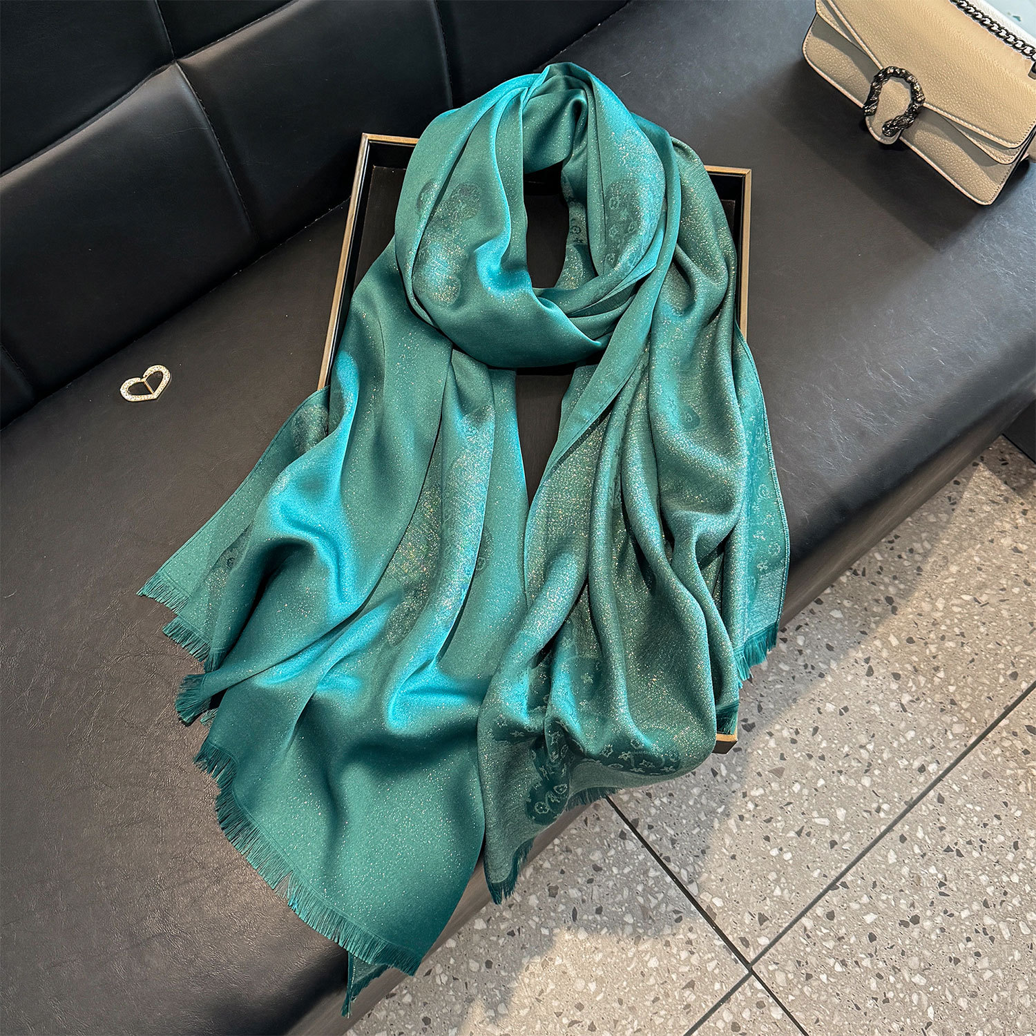 2025 새로운 봄과 여름 실크 코튼 골드 실크 스카프 높은 패션 웨스턴 스타일 비치 타월 목도리 5 점 스타 스카프 여성