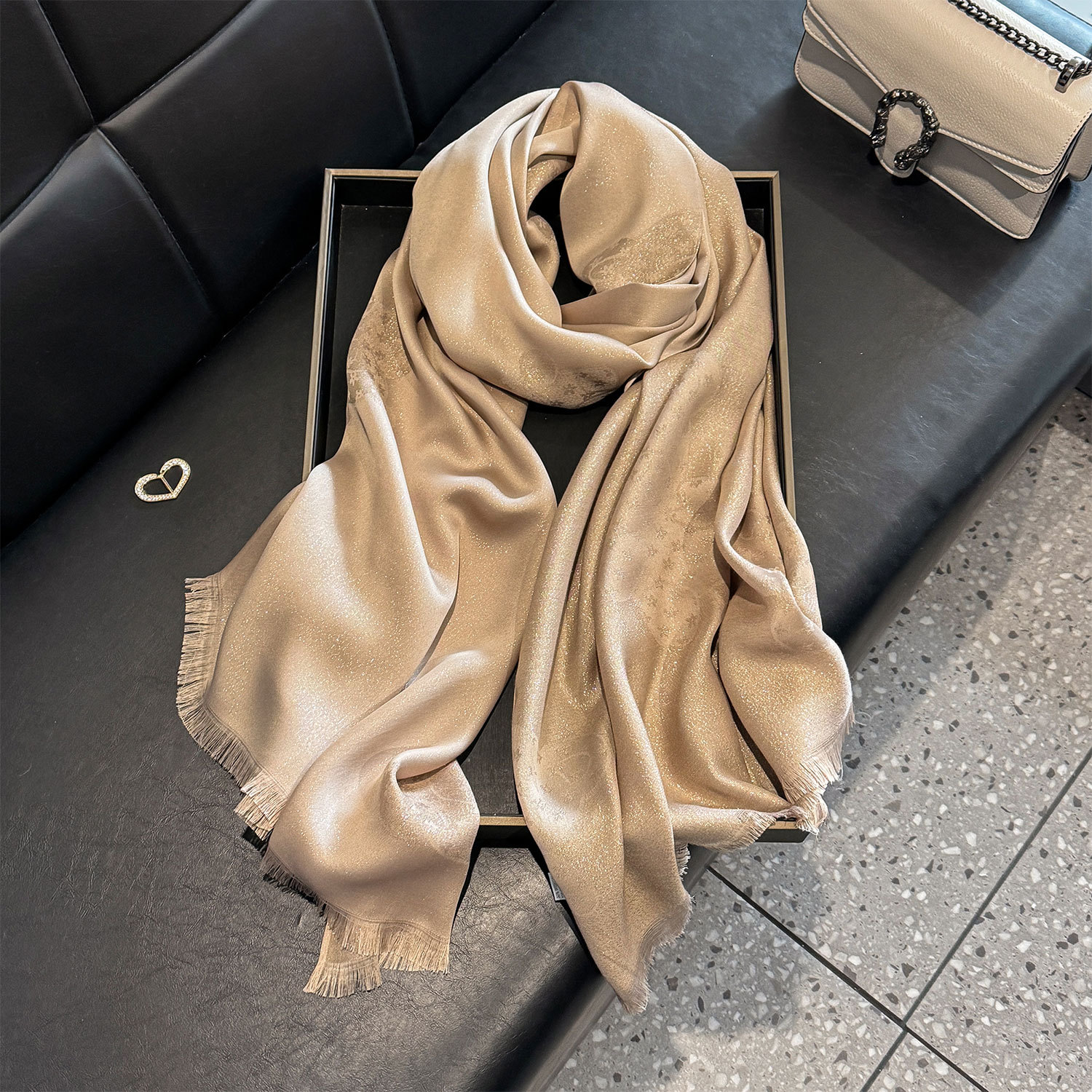 2025 새로운 봄과 여름 실크 코튼 골드 실크 스카프 높은 패션 웨스턴 스타일 비치 타월 목도리 5 점 스타 스카프 여성스토어 가기