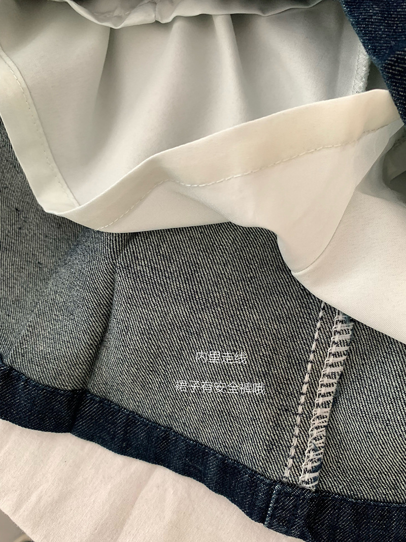 Oumarai 스티칭 레이스 더블 레이어 인형 칼라 반팔 데님 탑 스커트 투피스 여성용 세트 2305스토어 가기