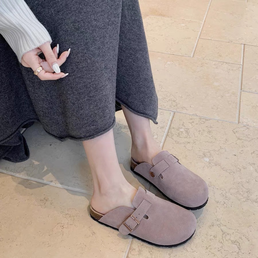 재고 크기 35-46 전체 정품 가죽 버켄 탈 신발 여성용 바오 터우 코크 바닥 높이 증가 절반 슬리퍼