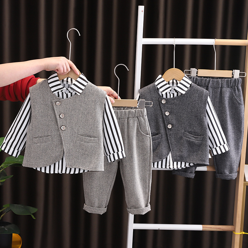 소년 봄과 가을 세트 조끼 세트 2025 새로운 잘 생긴 아기 봄 옷 셔츠 3 조각 유행스토어 가기