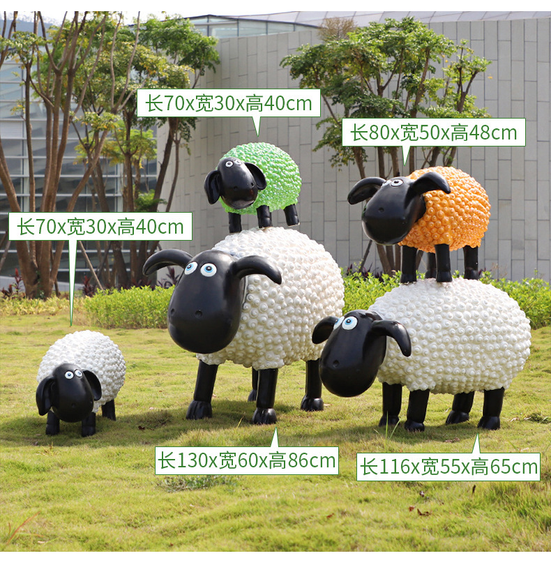 야외 만화 숀 양 조각 정원 풍경 조각 공원 경치 지역 잔디 장식 유치원 안뜰 장식품스토어 가기