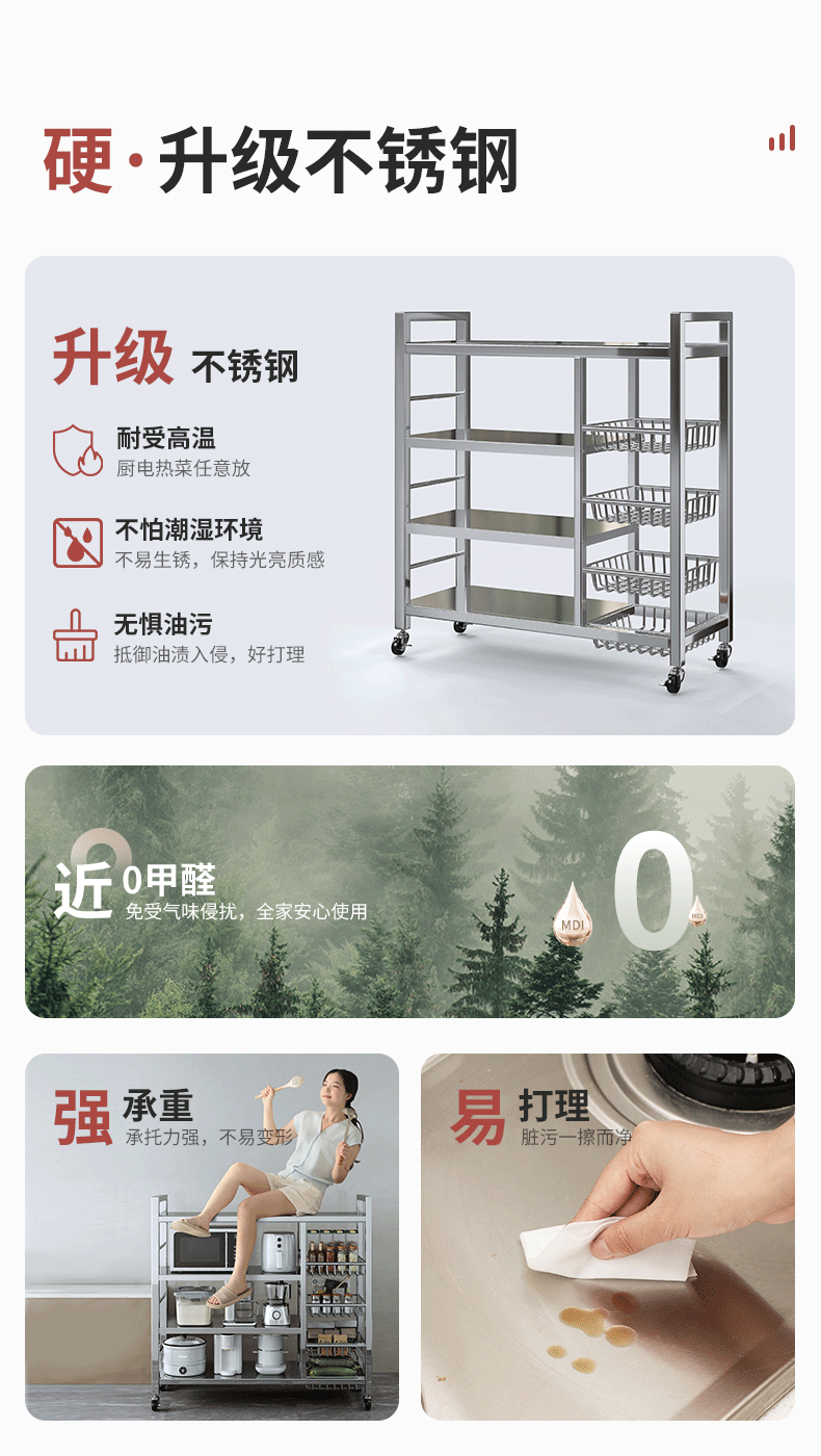 • [고품질 스테인레스 스틸] 대담하고 강화된 4겹 80CM❤️보드 4개와 바구니 3개