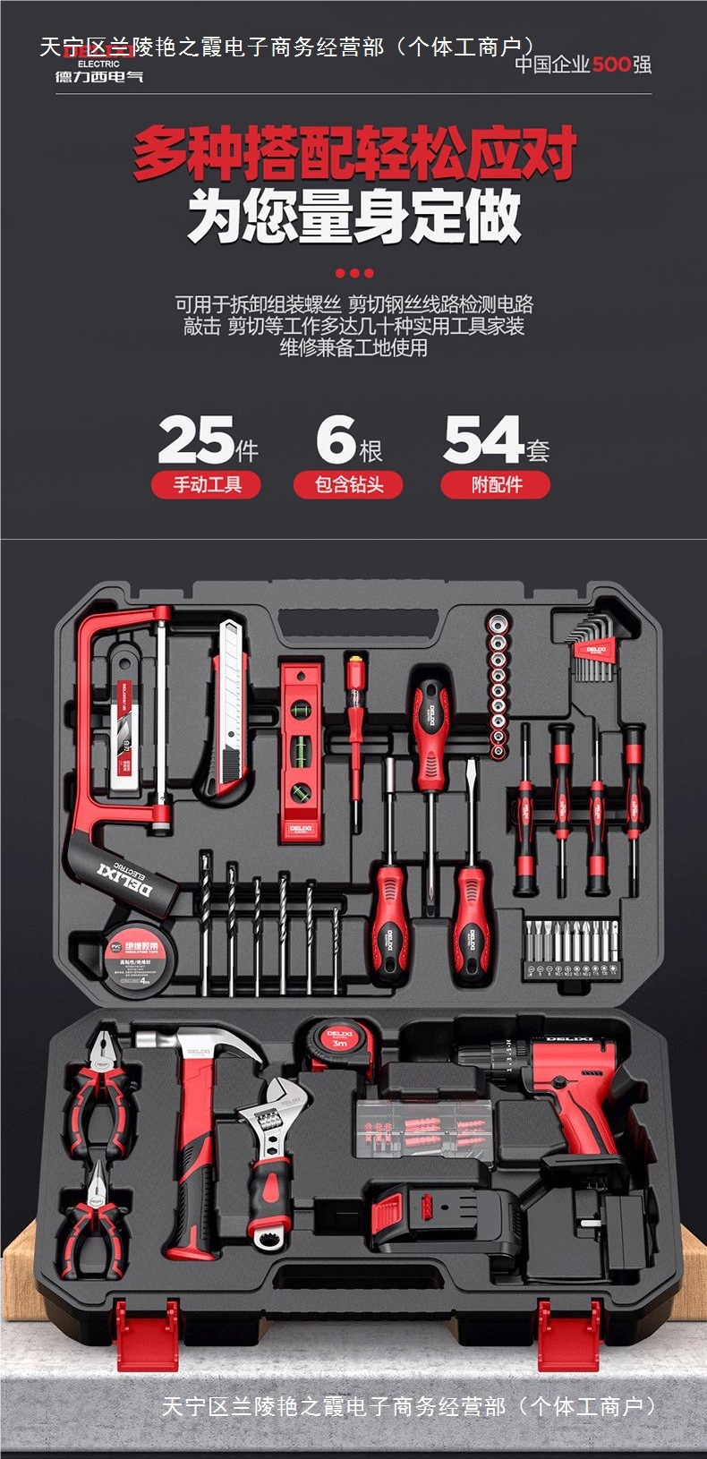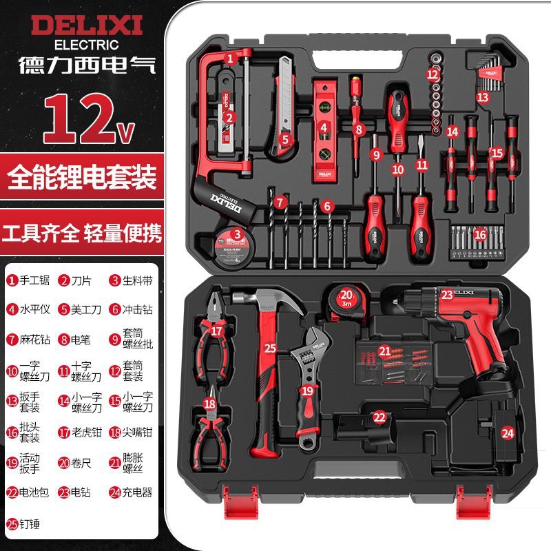 Delixi 가정용 도구 세트 리튬 전기 드릴 다기능 유지 보수 하드웨어 도구 세트 조합 도구 완전한 세트스토어 가기