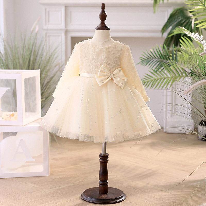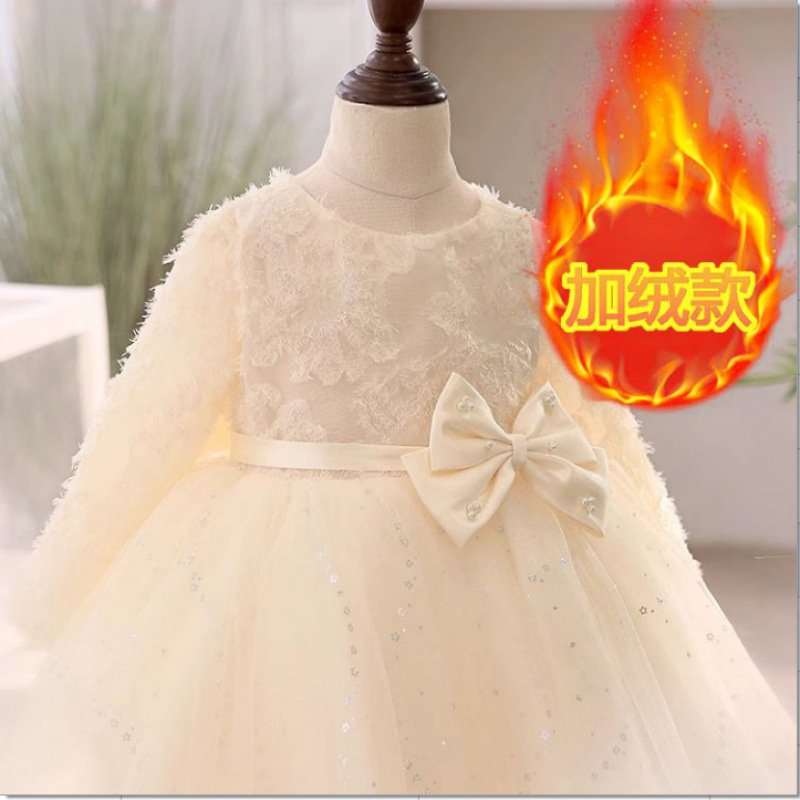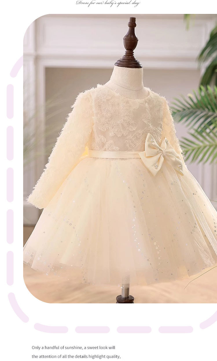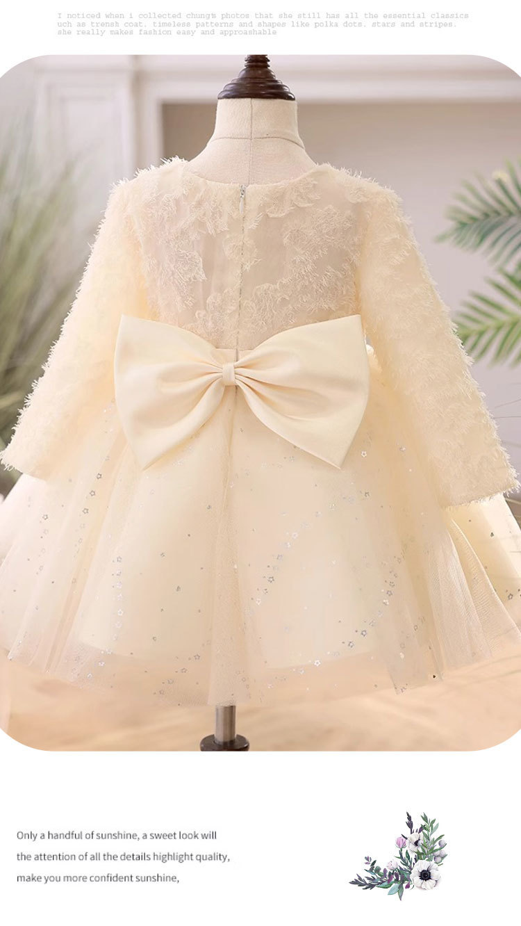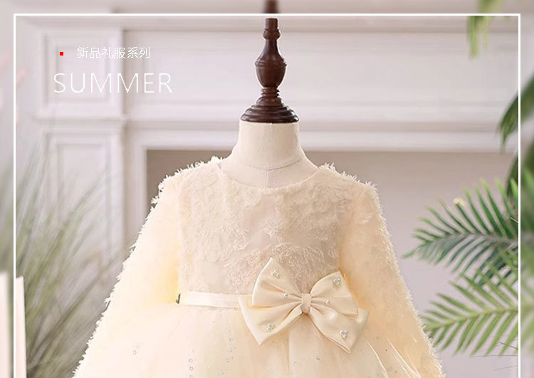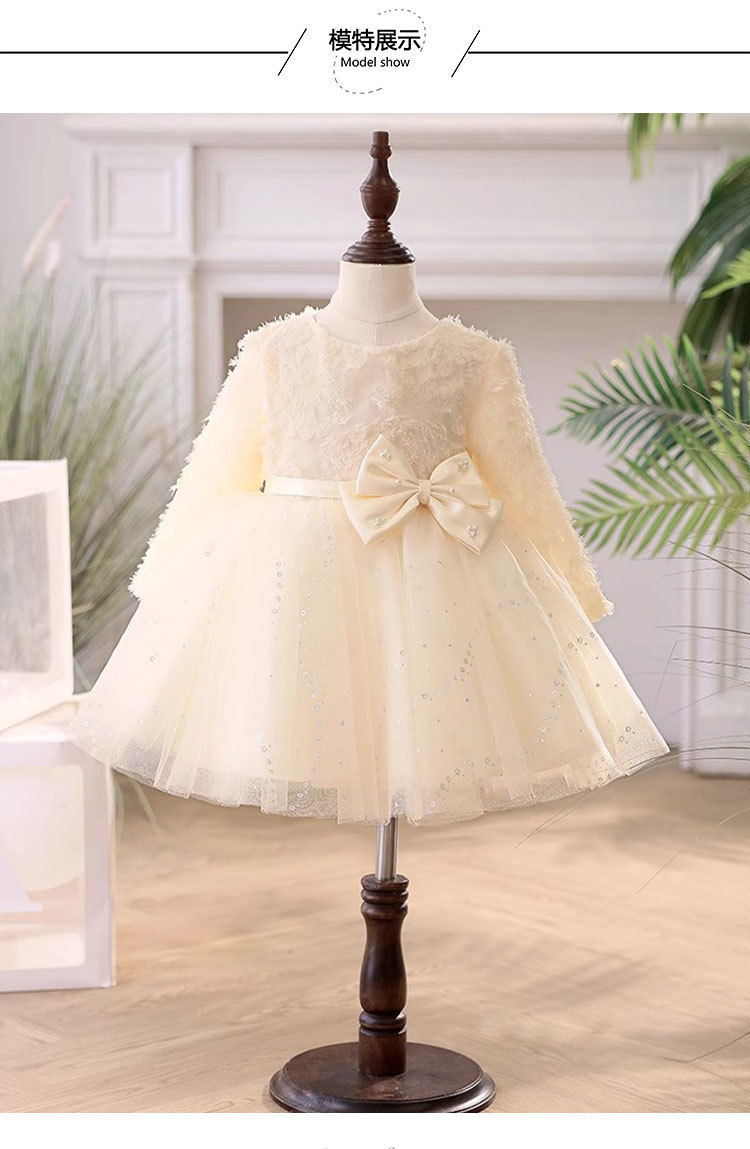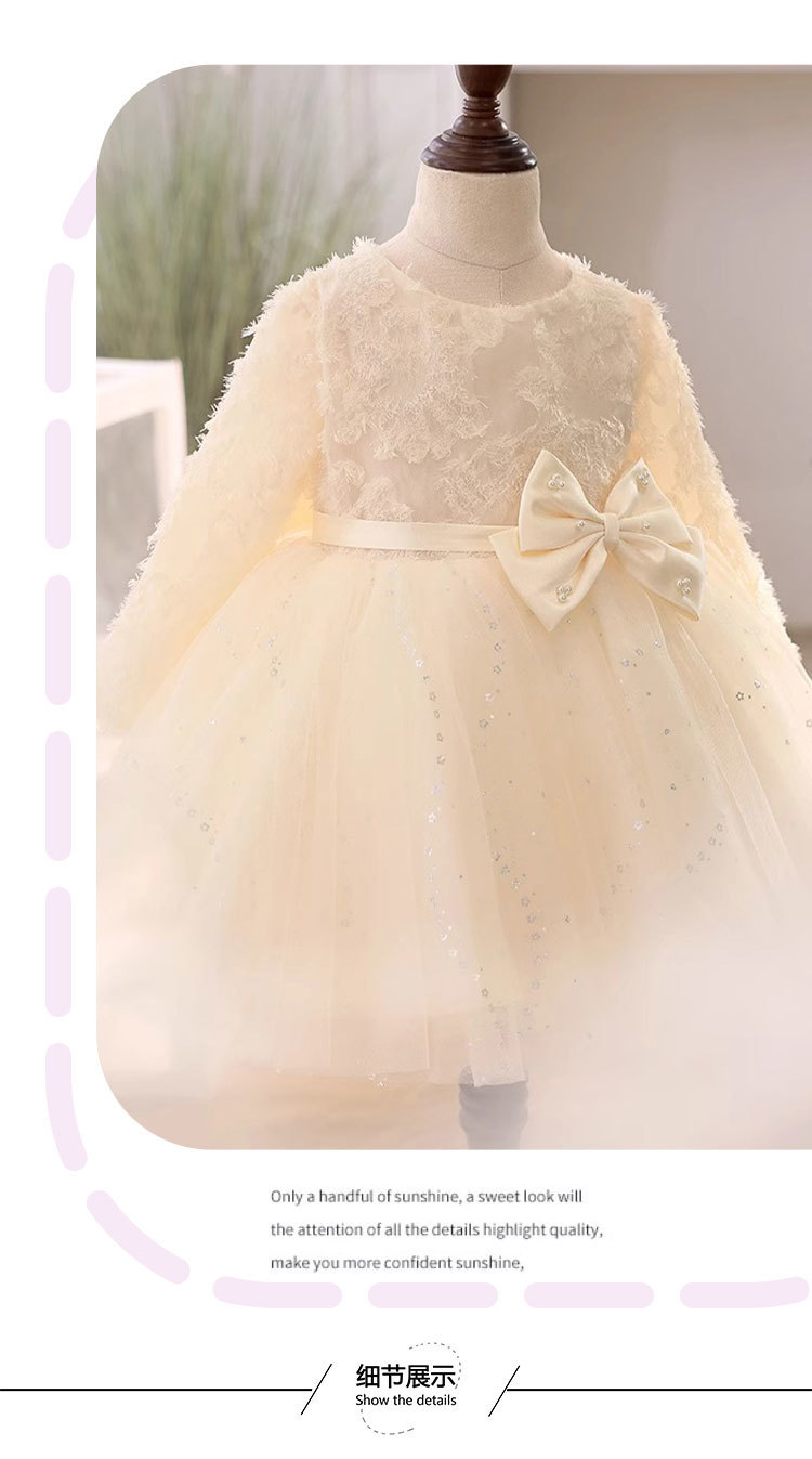 꽃 소녀의 결혼식 샴페인 원피스 소녀의 서양식 긴 소매 호스트 하이 엔드 한 살짜리 아기 소녀의 공주 원피스스토어 가기