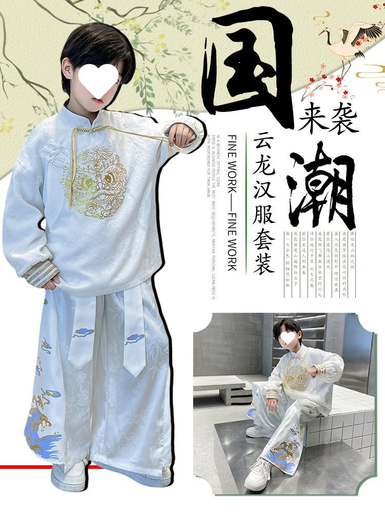 어린이 상어 어린이 의류 봄과 가을 소년 세트 어린이 국가 스타일 유행 한푸 중 큰 어린이 국가 패션 탕 세트 투피스 유행 세트스토어 가기