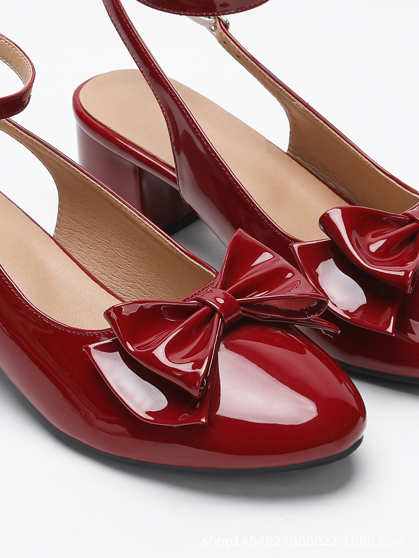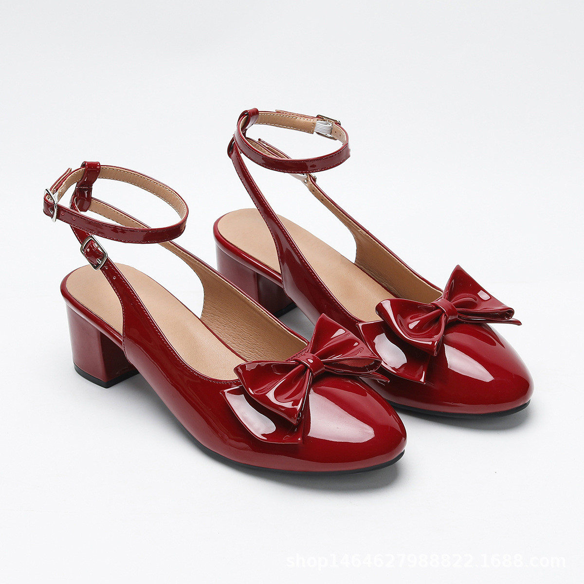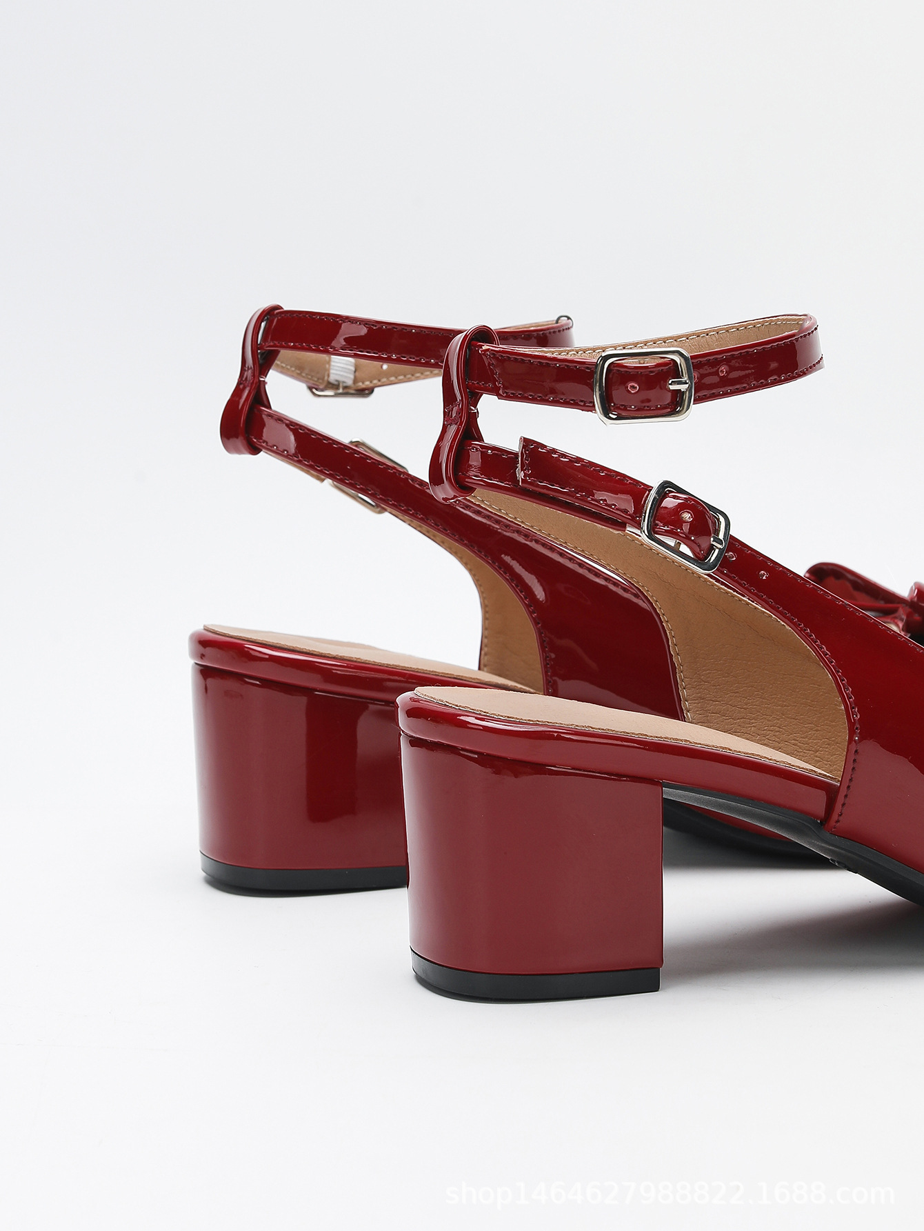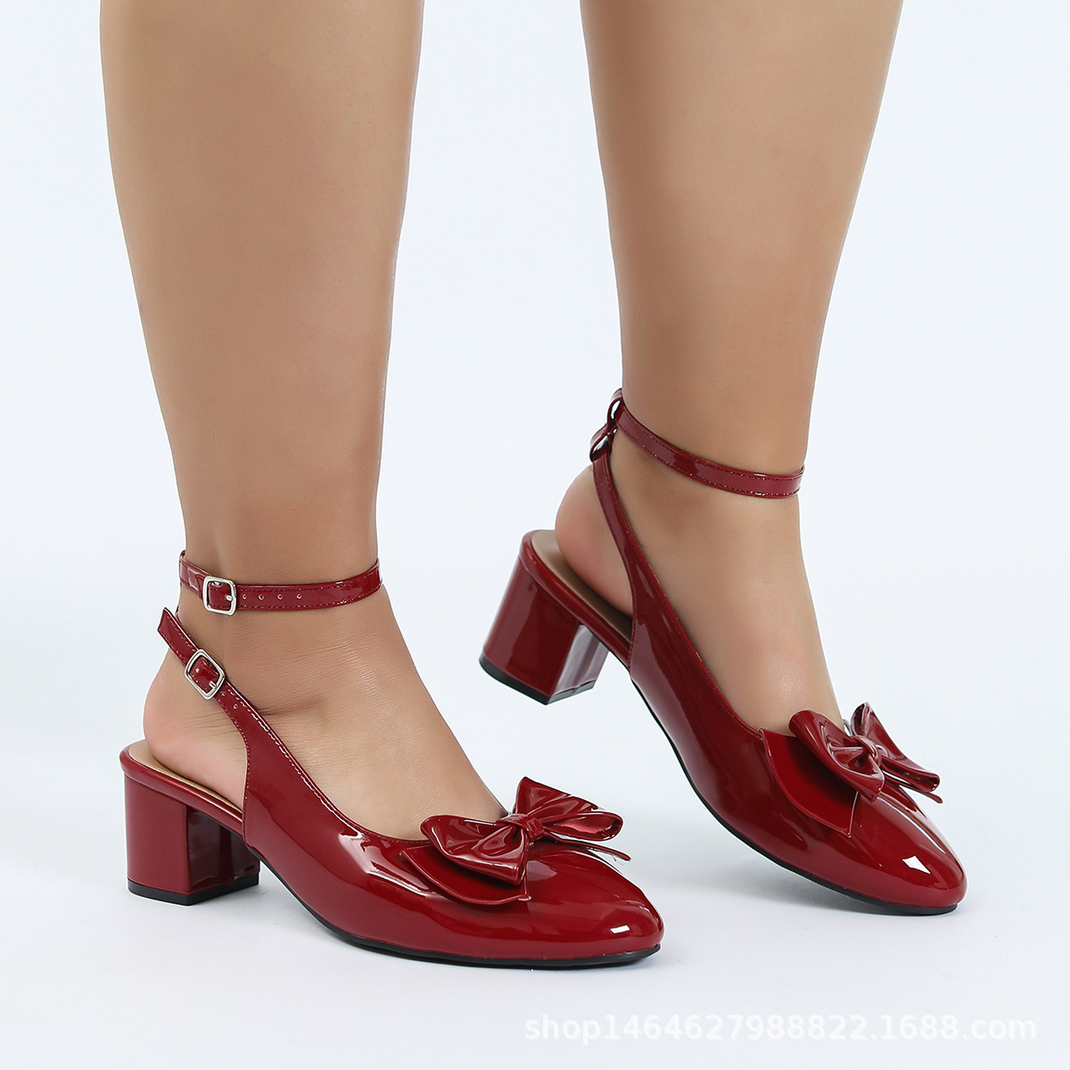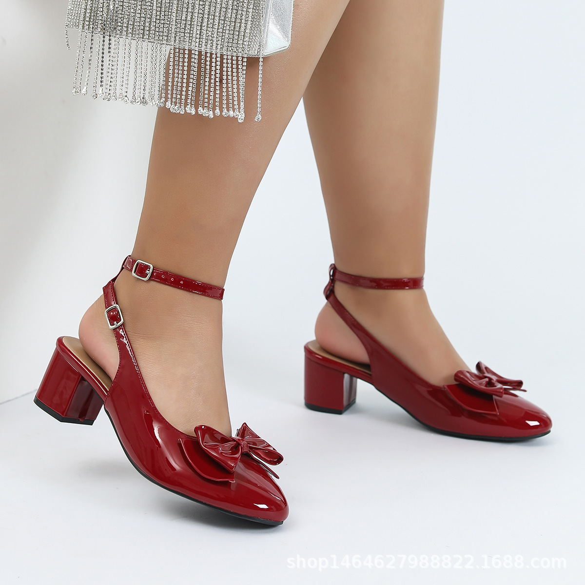 2024 새로운 아티블 버클 보우 두꺼운 힐 여자 샌들 올 매치 캐주얼 듀힐 백 스트랩 하이힐스토어 가기