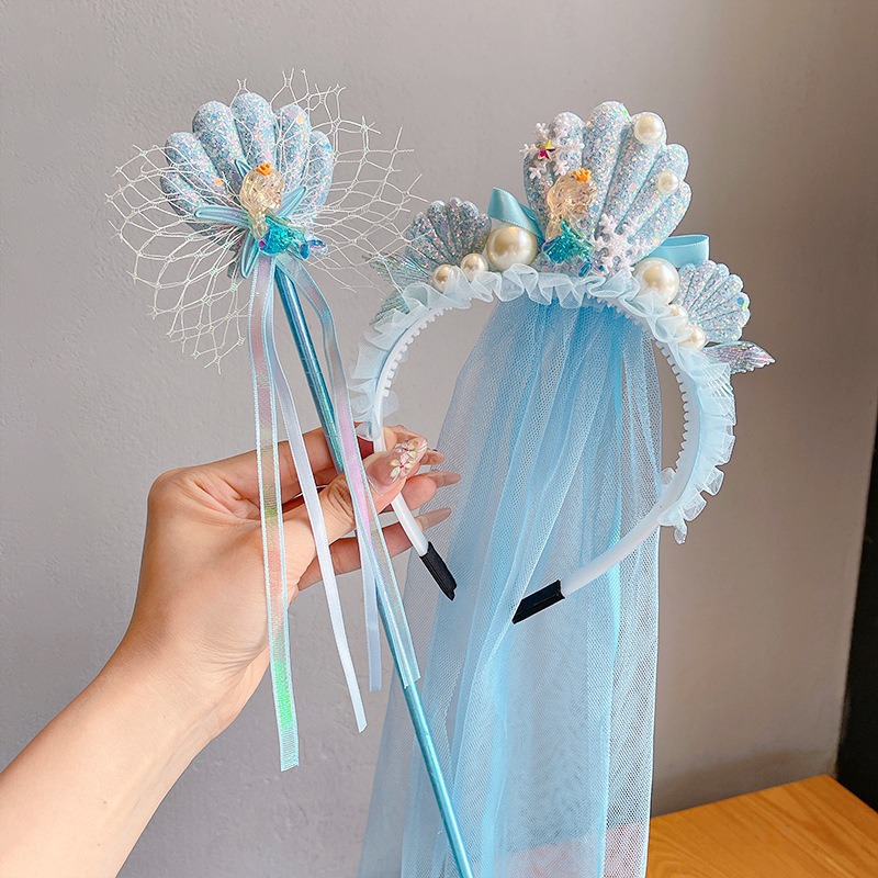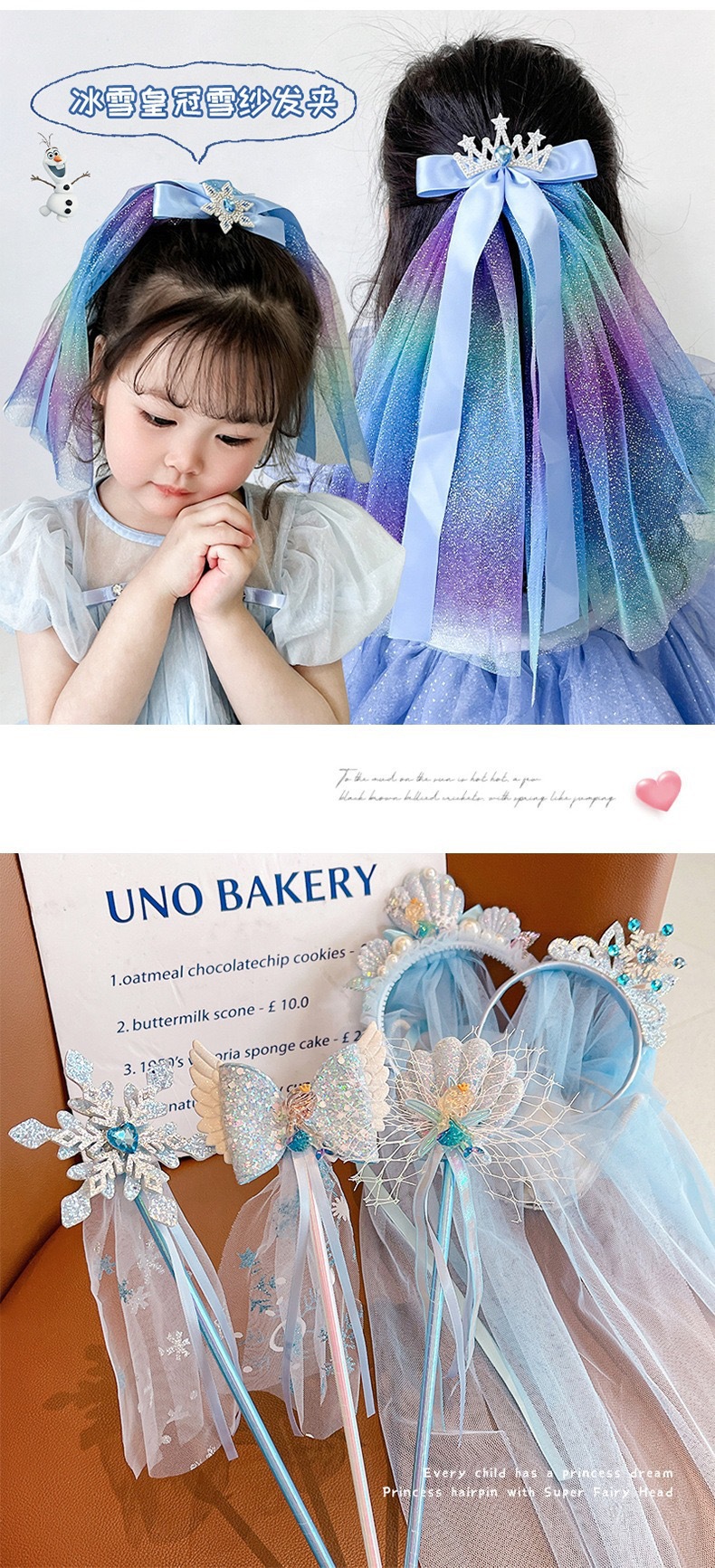 어린이 머리띠 엘사 공주 리본 헤어 액세서리 메쉬 머리띠 매직 지팡이 세트 냉동 여자 헤어 액세서리스토어 가기