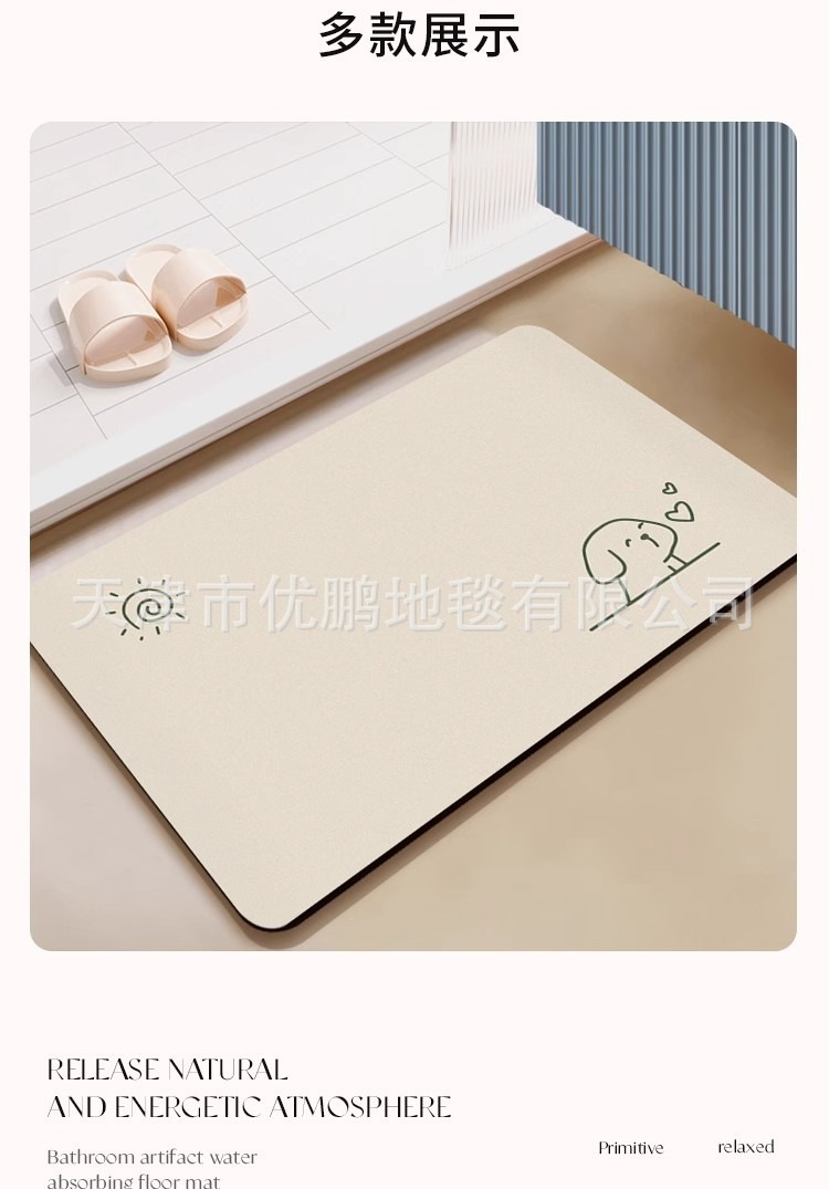 만화 간단한 Diatom 진흙 흡수성 바닥 매트 가정용 욕실 미끄럼 방지 빠른 건조 발 매트 쉬운 관리 도어 매트 공장 아울렛스토어 가기