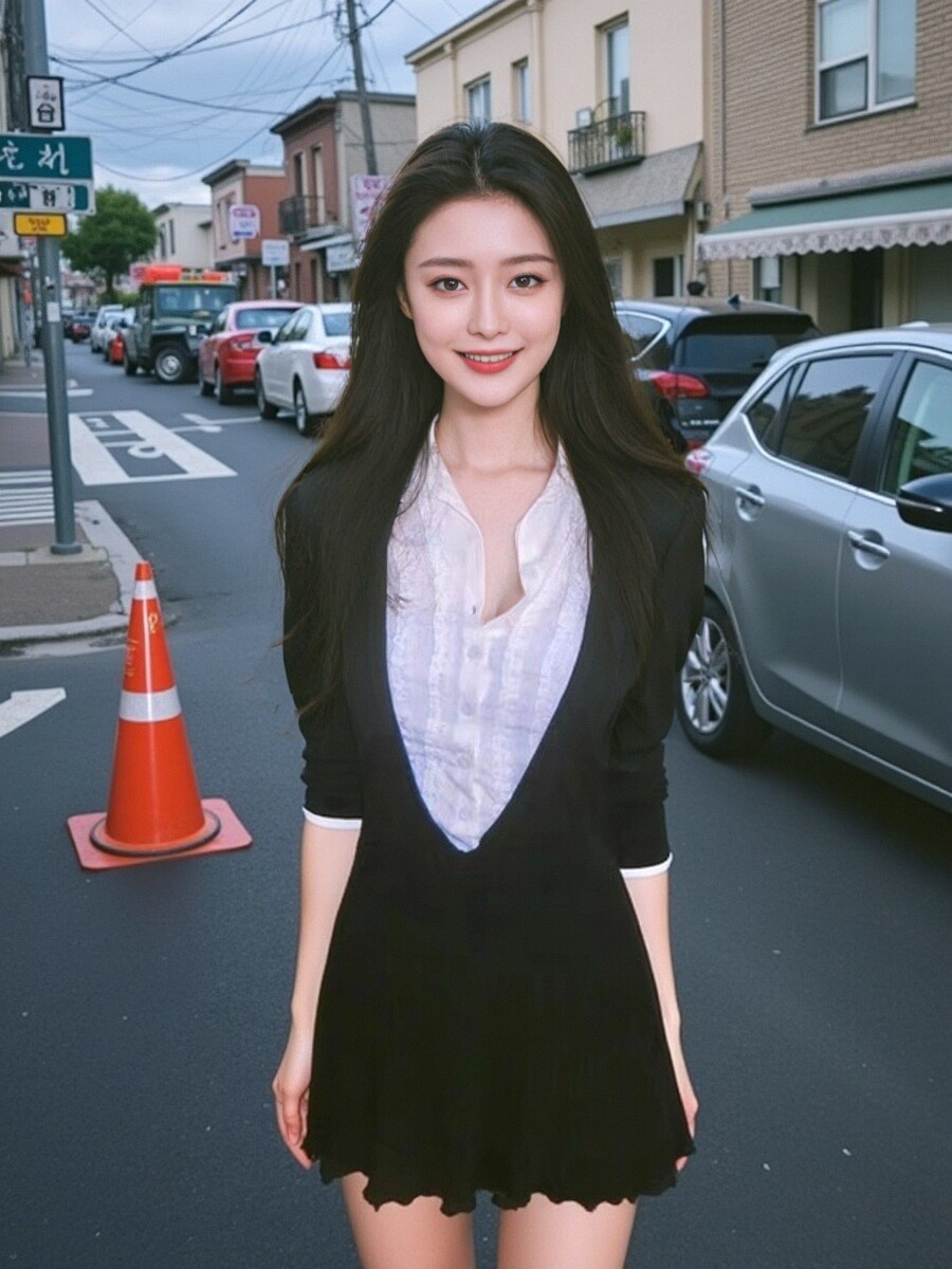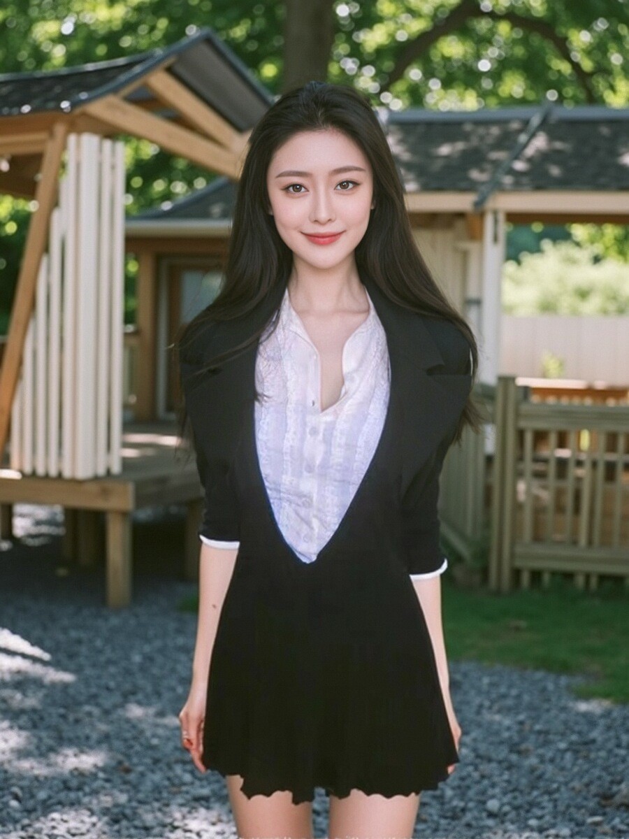 이몽령과 같은 스타일의 배색 배색이 돋보이는 투피스룩 원피스, 여학생 스타일의 단추와 라펠 니트 셔츠 원피스