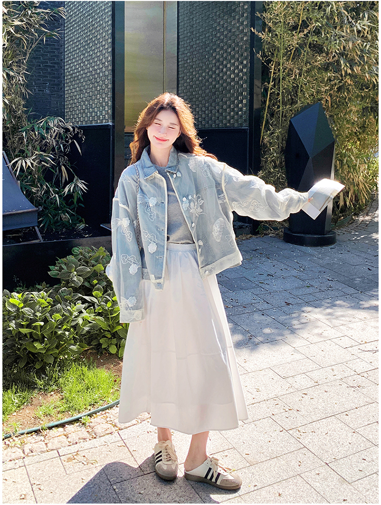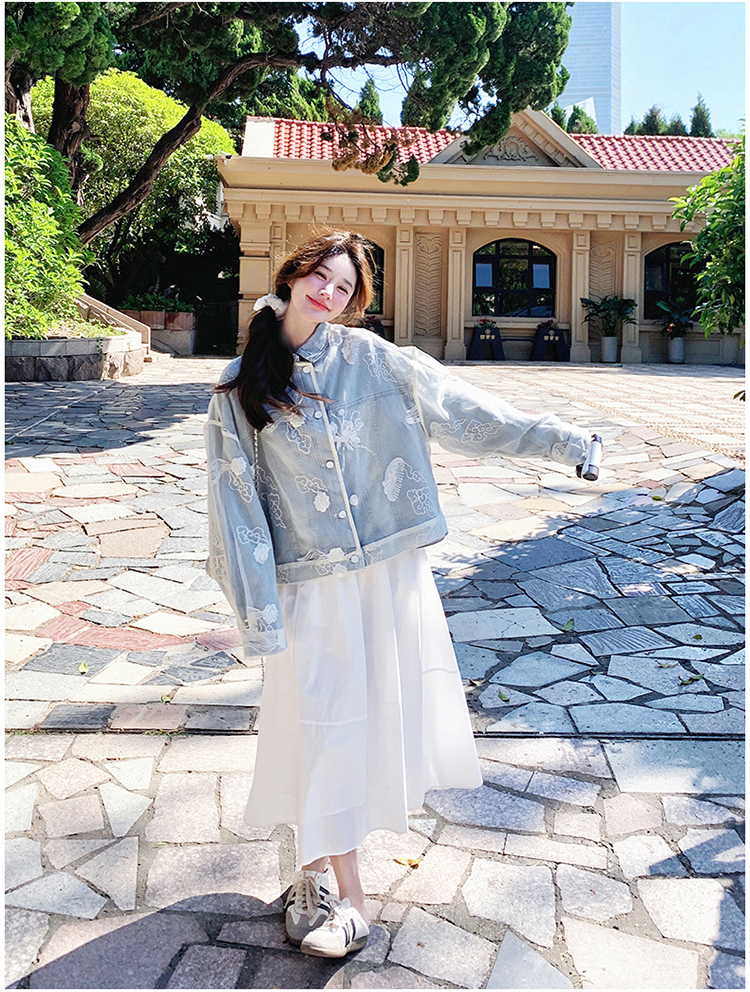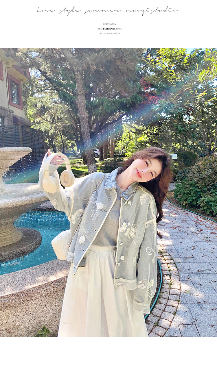 데님 코트 여성 레이스 자수 바느질 봄 프랑스 시대 감소 로맨틱 빈티지 인기 슈퍼 니스 탑 재킷스토어 가기