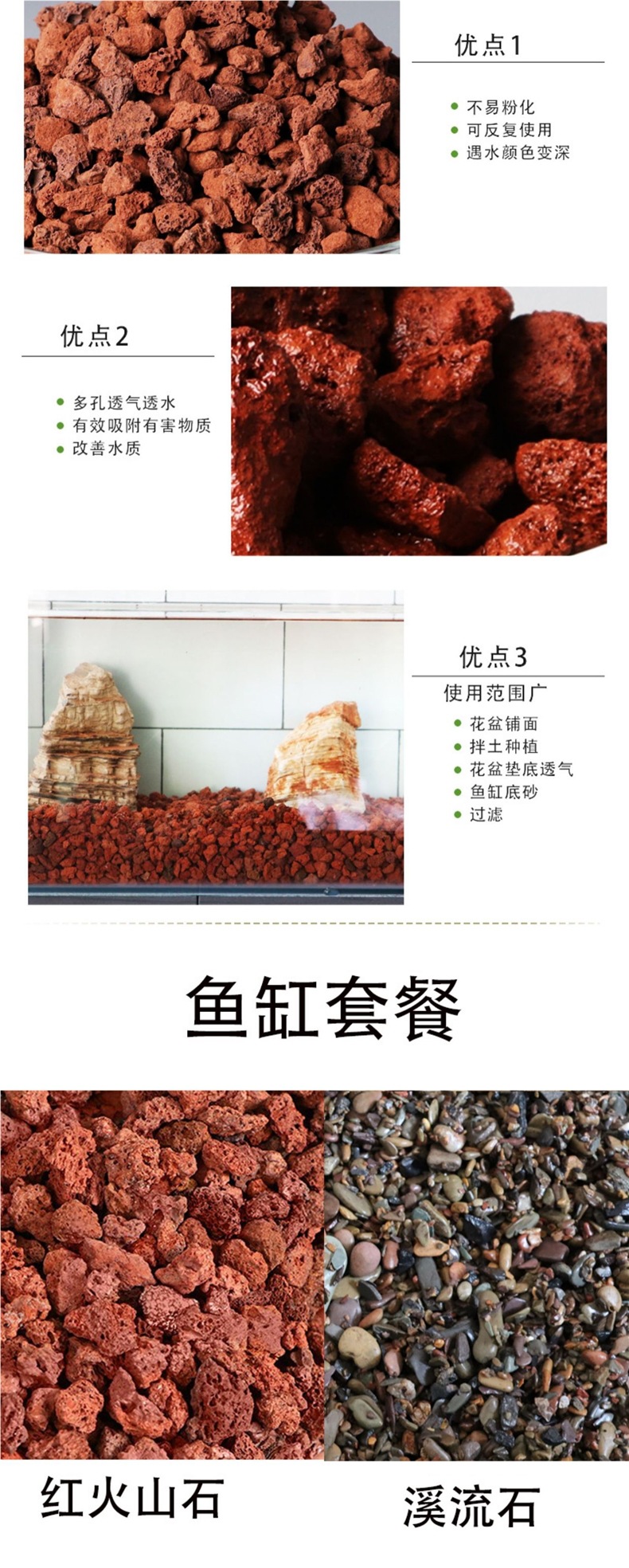 • [60통 패키지] 적색 화산석 6-9mm 5kg + 스트림석 0.5-3cm 10