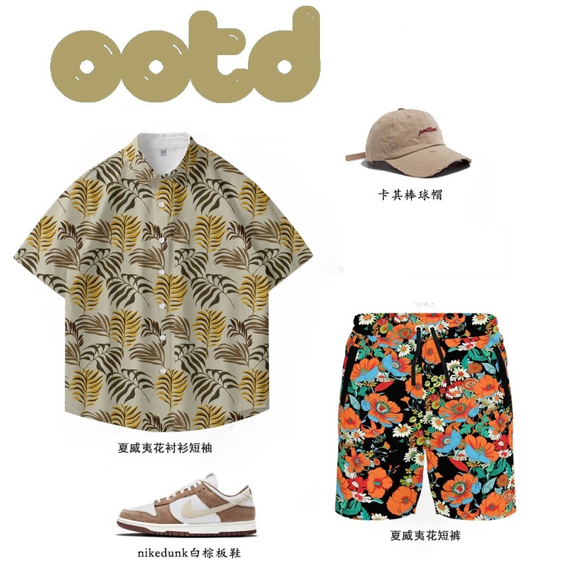 아메리칸 스타일 캐주얼 컬러 대비 반팔 반바지 투피스 세트 남자의 여름 트렌디 브랜드 셔츠 세트 바다스토어 가기