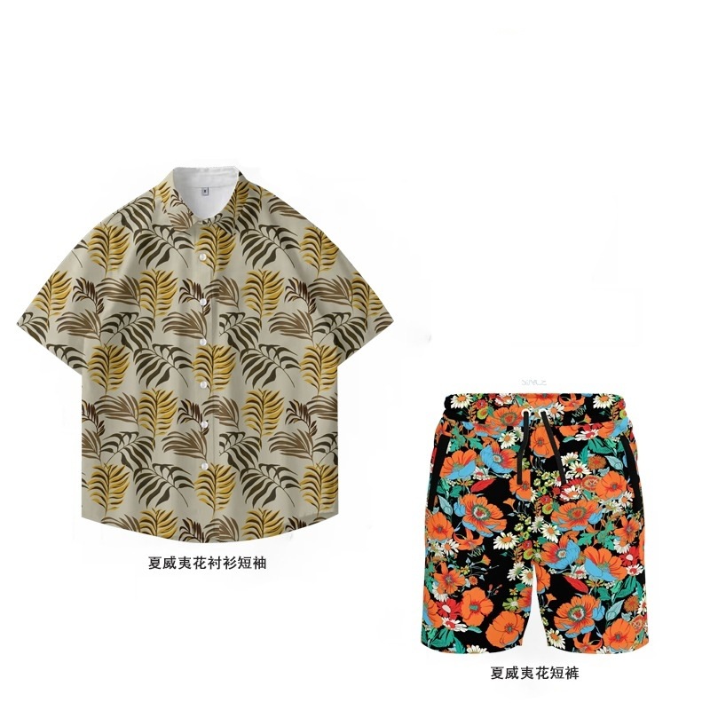 아메리칸 스타일 캐주얼 컬러 대비 반팔 반바지 투피스 세트 남자의 여름 트렌디 브랜드 셔츠 세트 바다