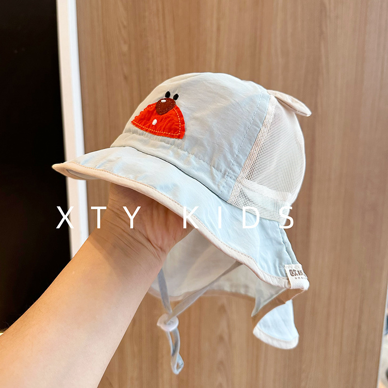 한국식 귀여운 곰 목도리 선스크린 여름 아기 차양 모자 빠른 건조 통기성 얇은 아기 선 스크린 모자