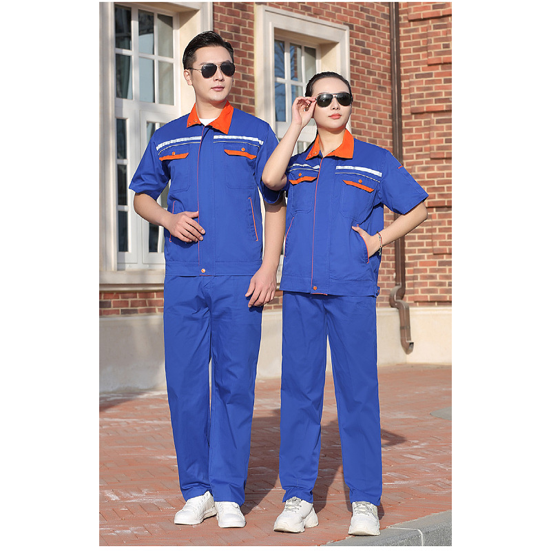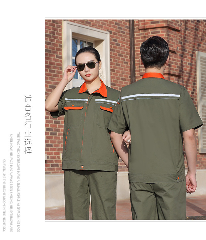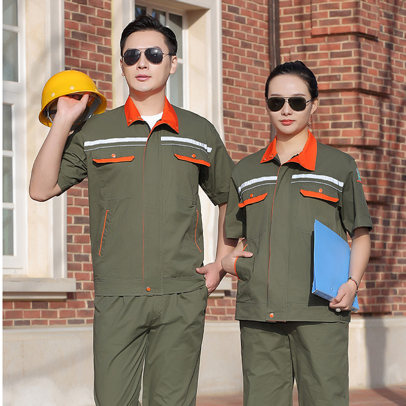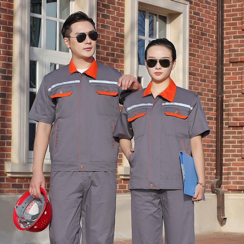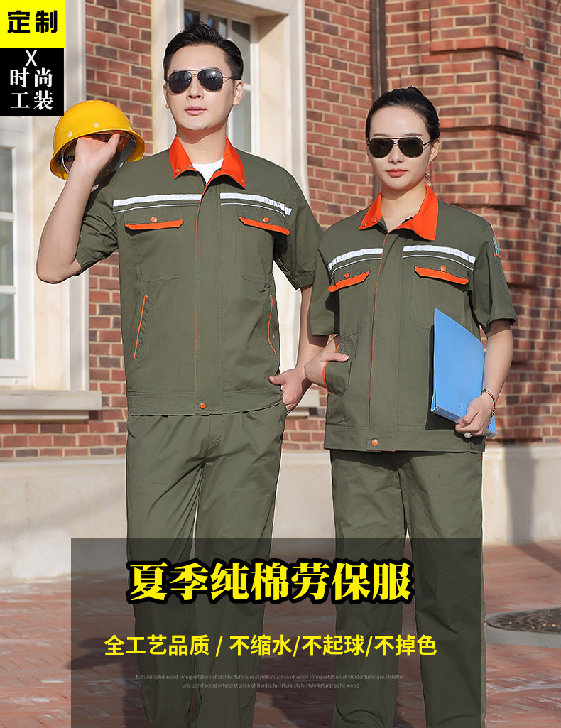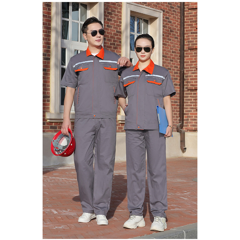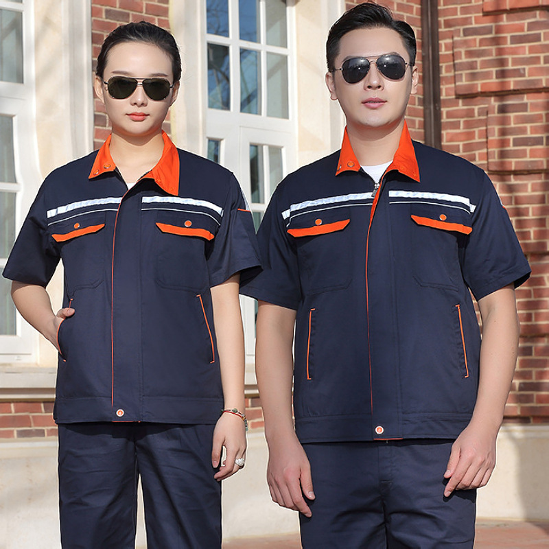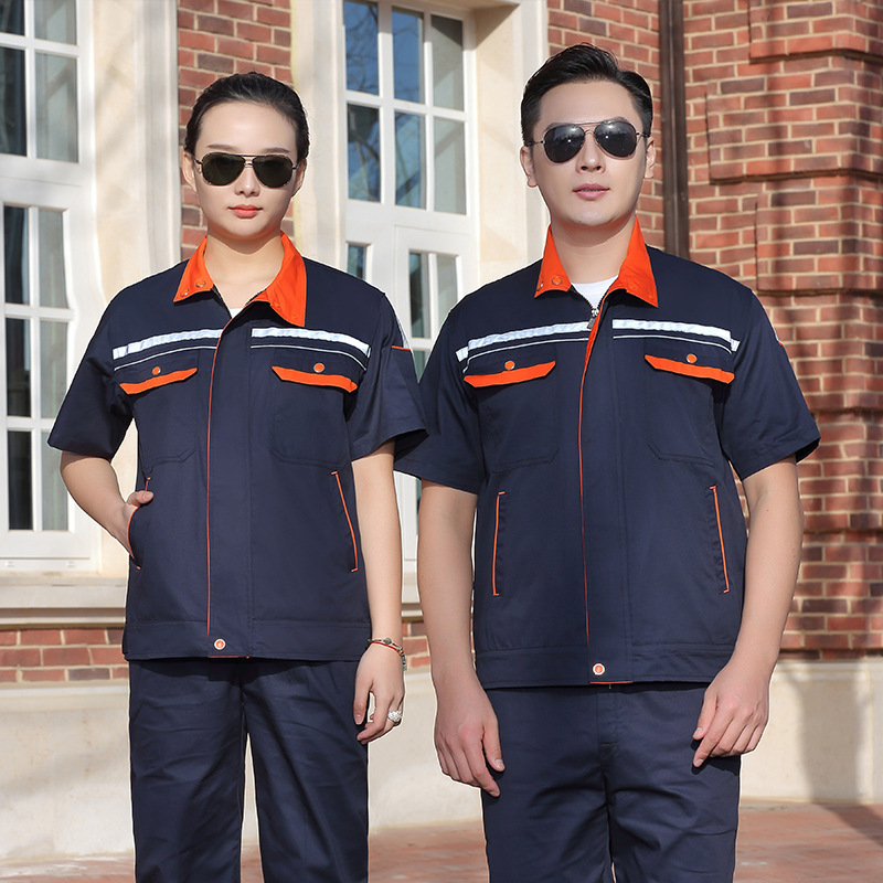 도매 여름 면화 반팔 작업복 작업복 세트 반사 도구 자동차 수리 엔지니어링 철 색상 매칭 인쇄 자수