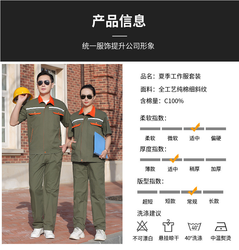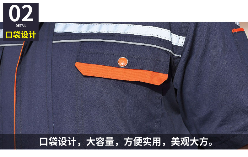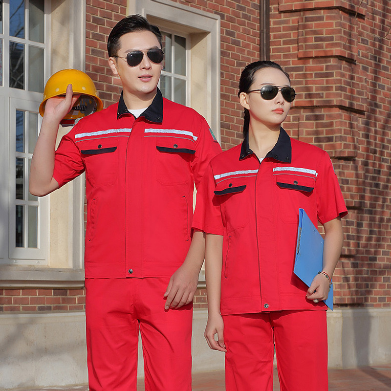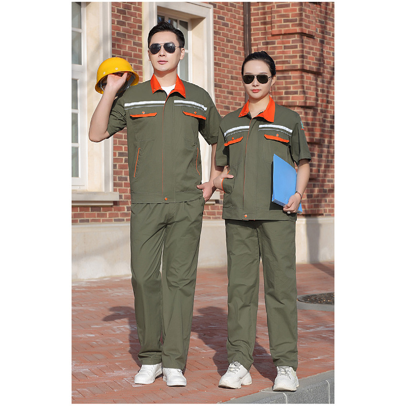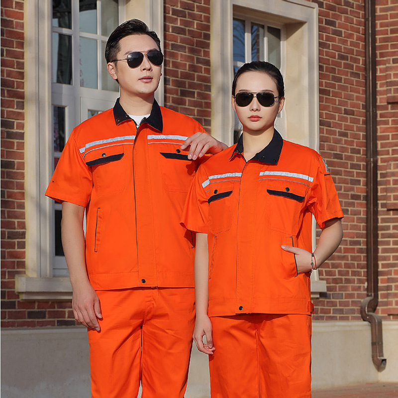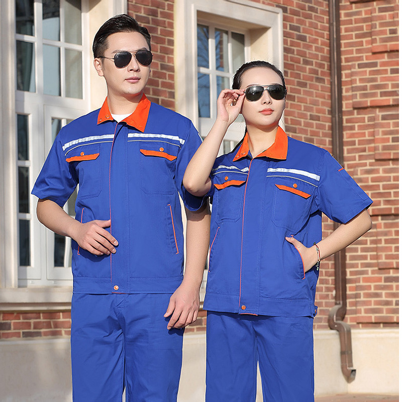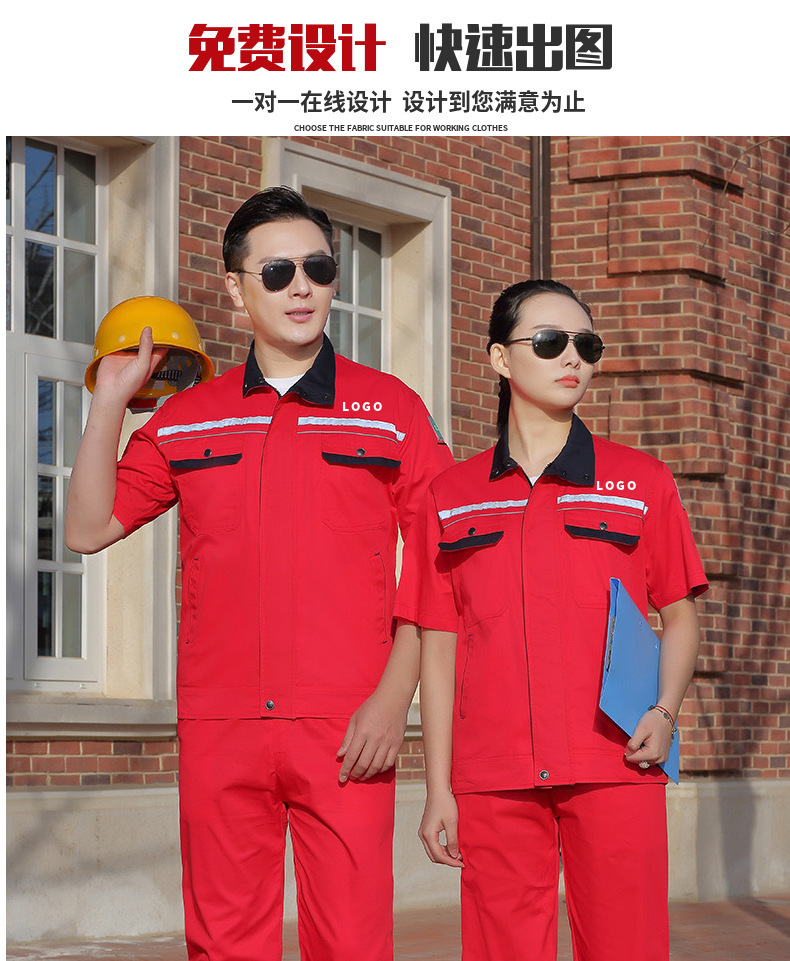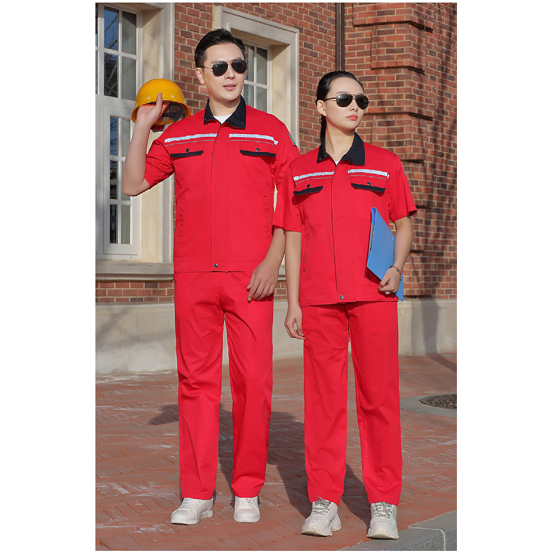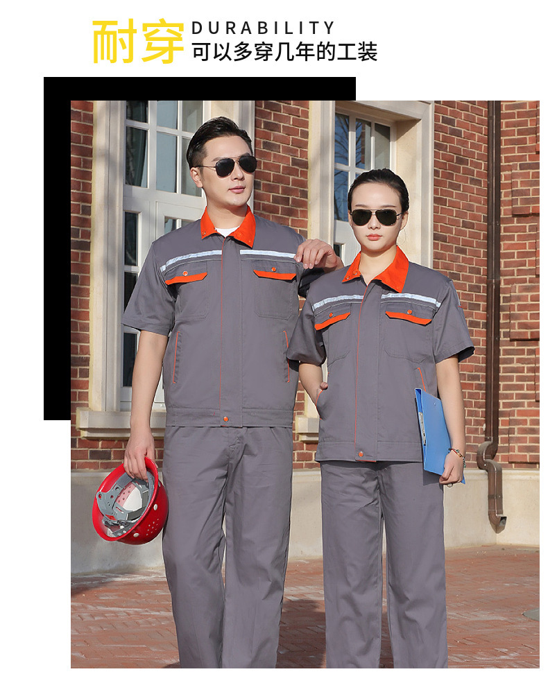 도매 여름 면화 반팔 작업복 작업복 세트 반사 도구 자동차 수리 엔지니어링 철 색상 매칭 인쇄 자수