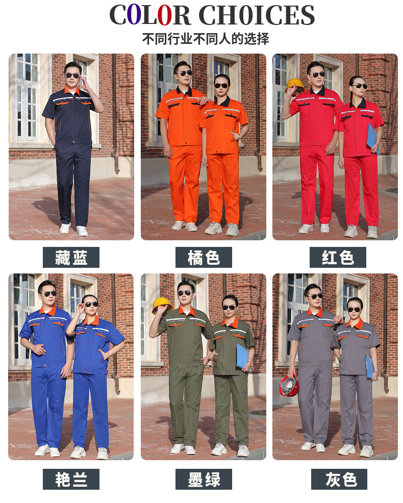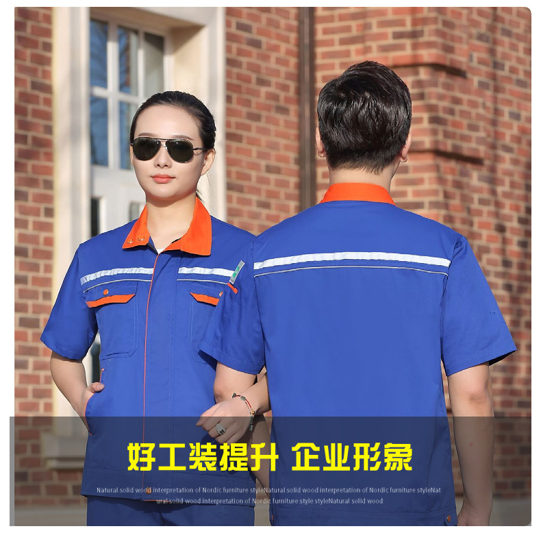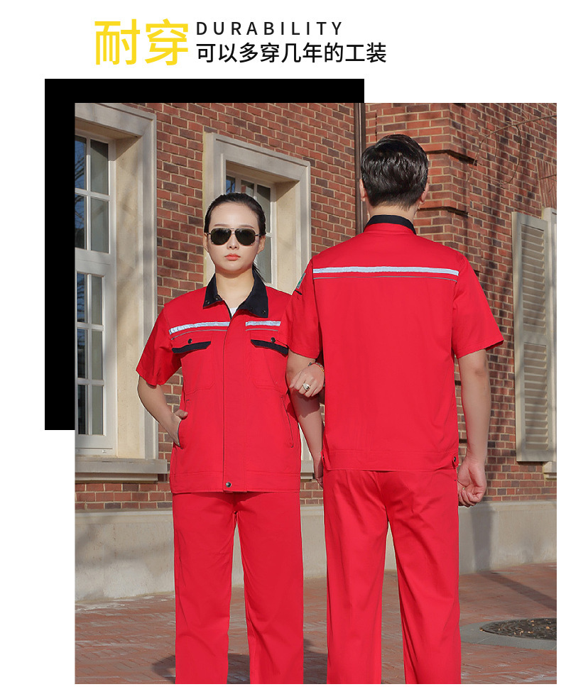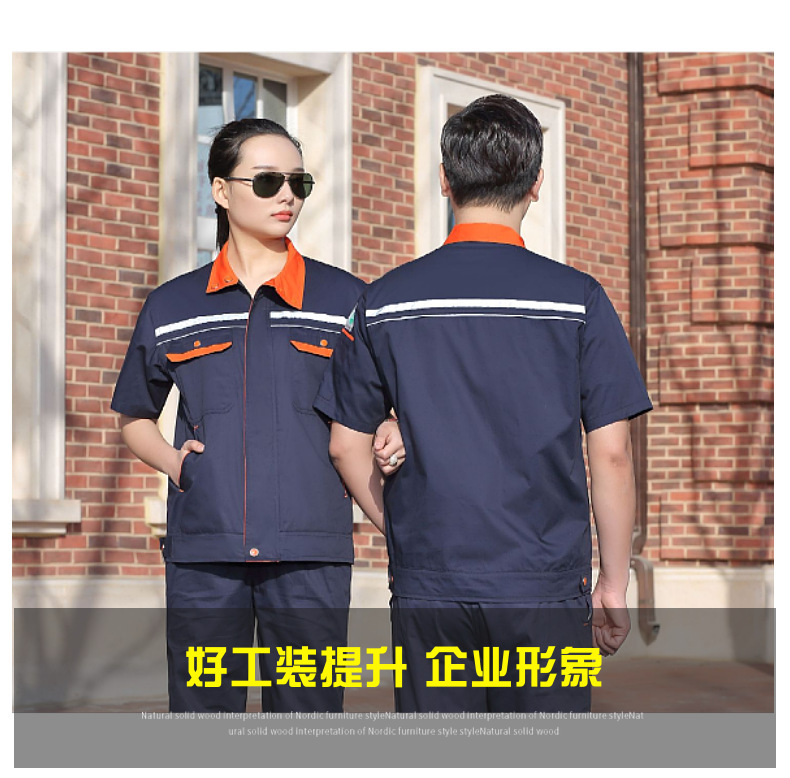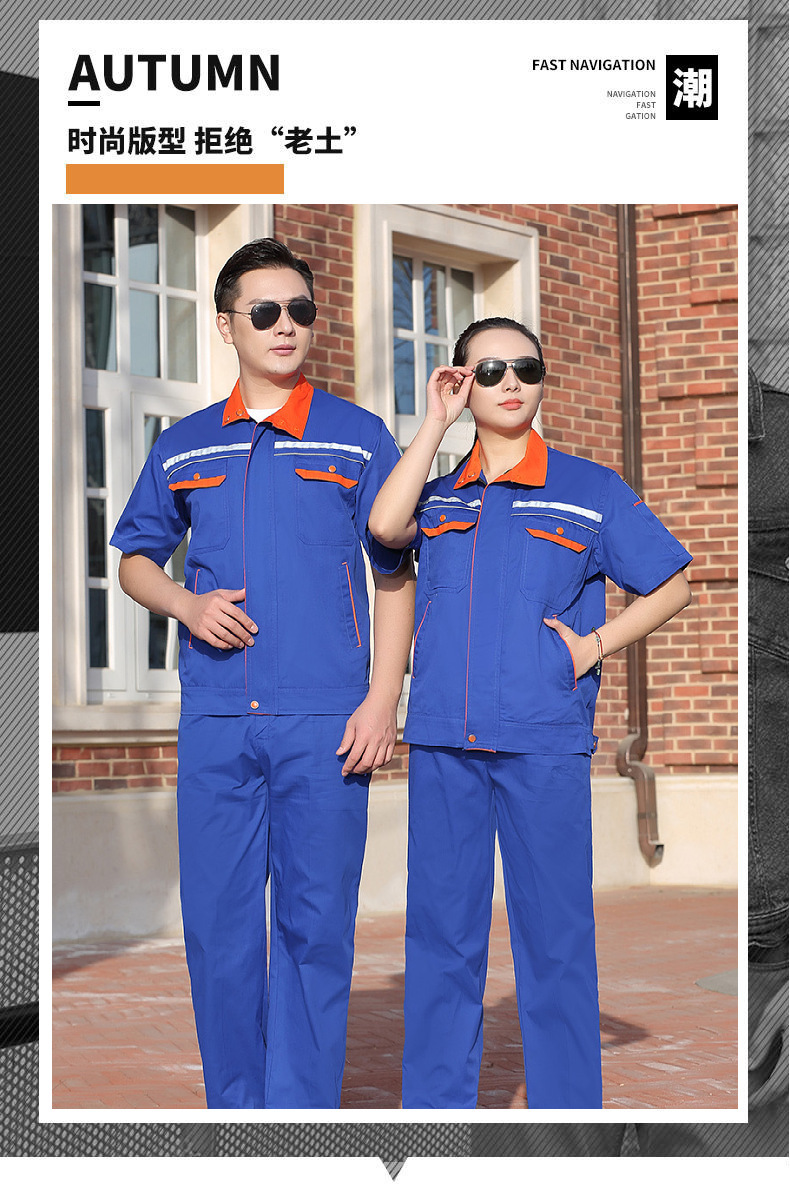 도매 여름 면화 반팔 작업복 작업복 세트 반사 도구 자동차 수리 엔지니어링 철 색상 매칭 인쇄 자수스토어 가기
