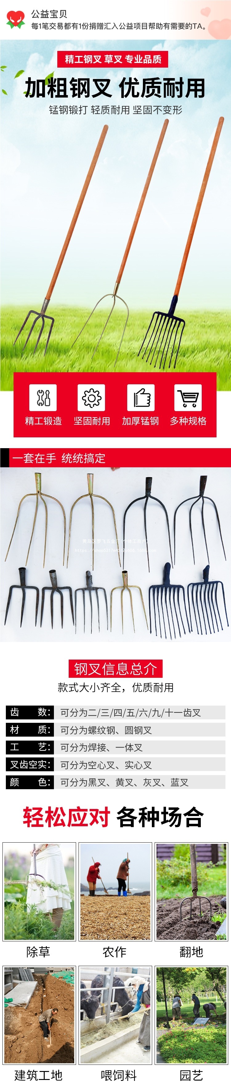 큰 강철 포크 철 포크 농업 도구 Daquan 삼각형 포크 농업 도구 턴어라운드 토양 잔디 포크 철 포크 헤드스토어 가기