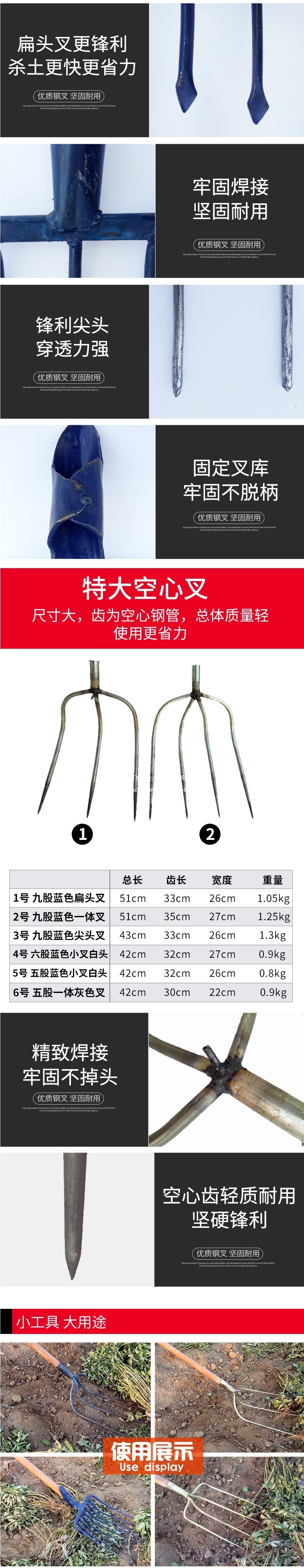 • 3가닥 굴착 포크가 두꺼워졌습니다.