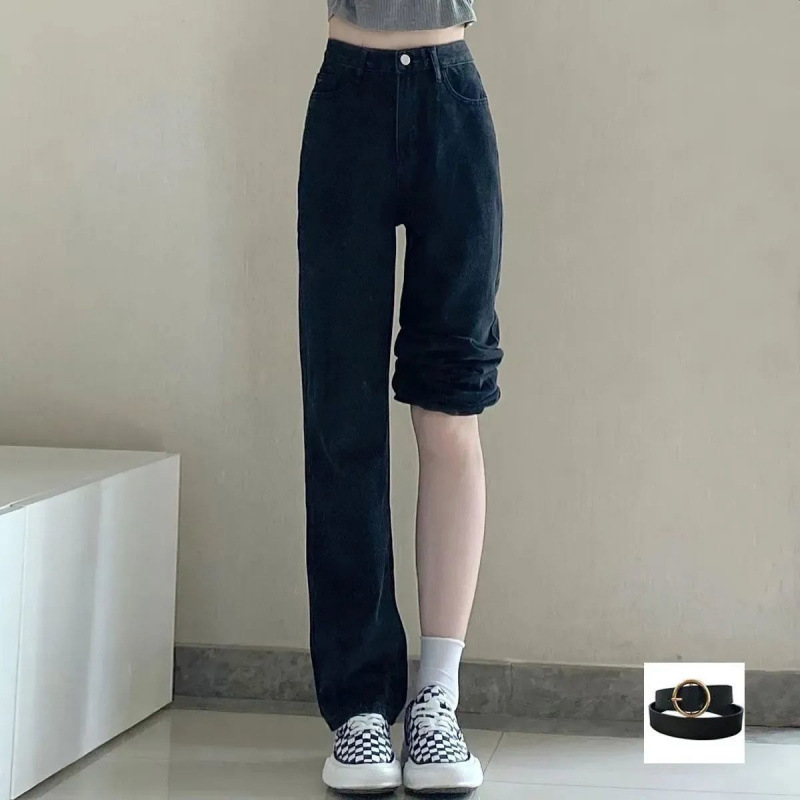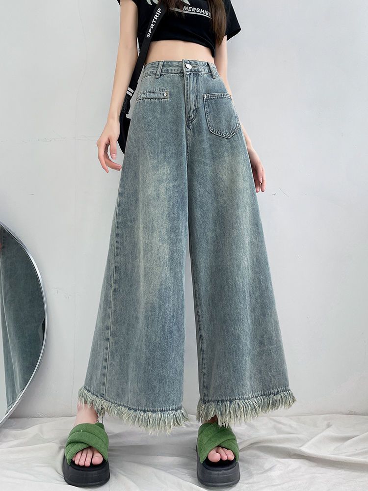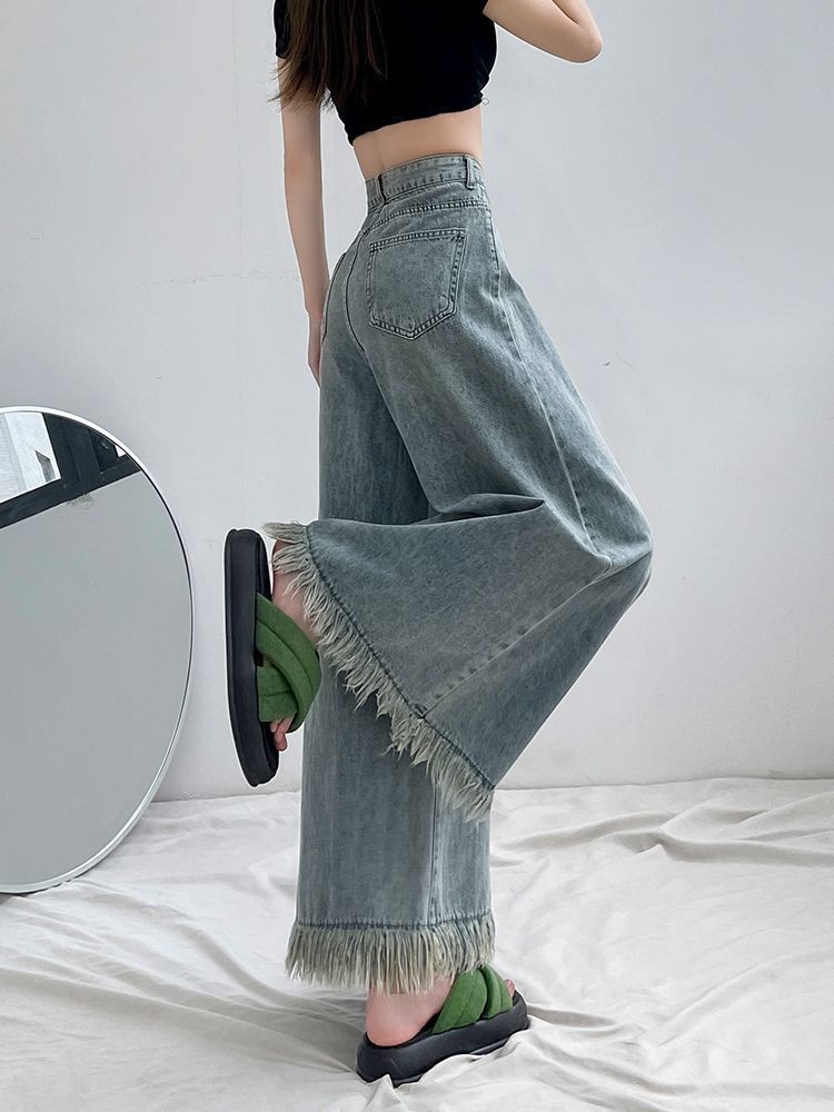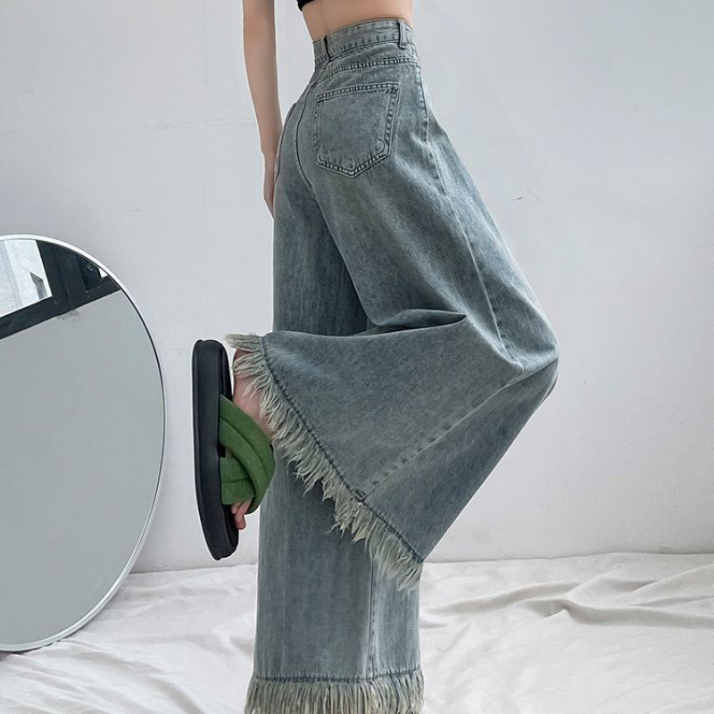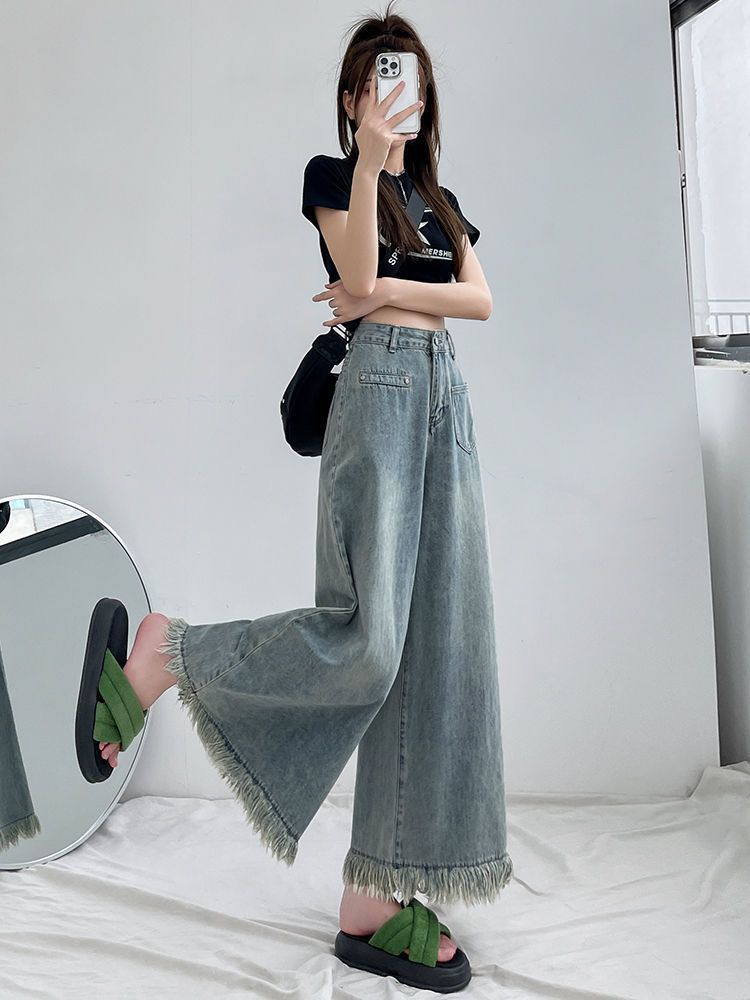 [2646 컬렉션] 큰 다리 바지 여성 넓은 다리 청바지 여성 가을 새 높은 허리 느슨한 큰 엉덩이 슬리밍스토어 가기