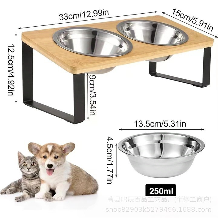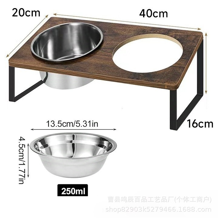 공장 애완 동물 피더 가정용 고양이와 개 식품 분지 로그 애완 동물 먹이 랙 아이언 우드 조합 고양이 그릇 랙 경사 입스토어 가기