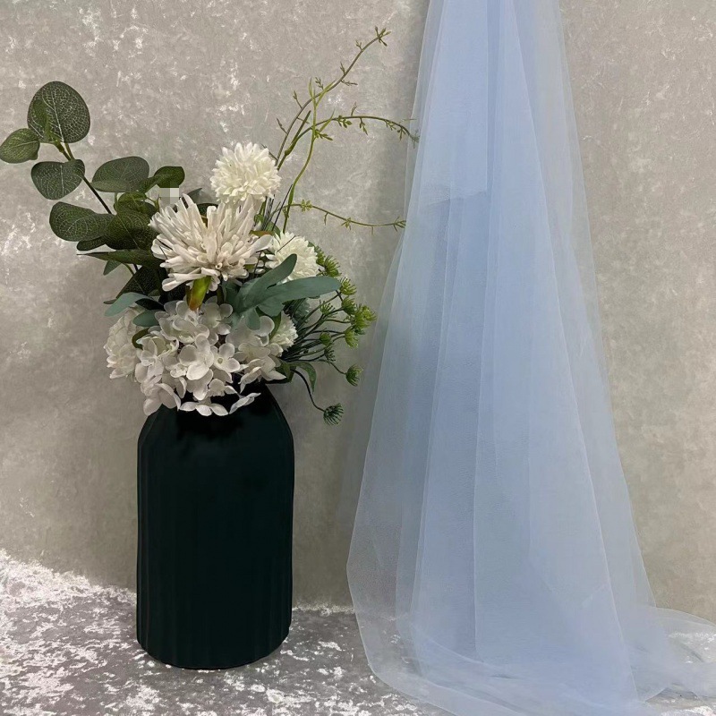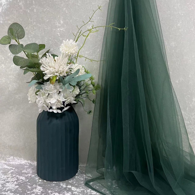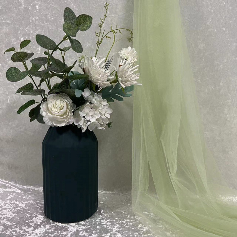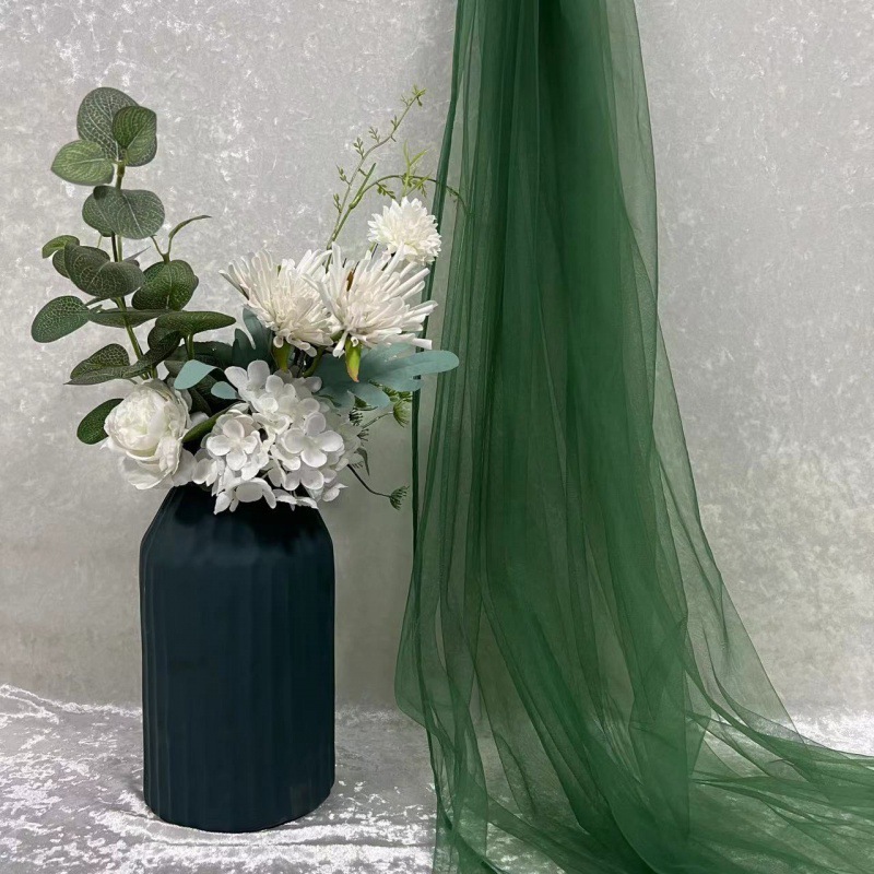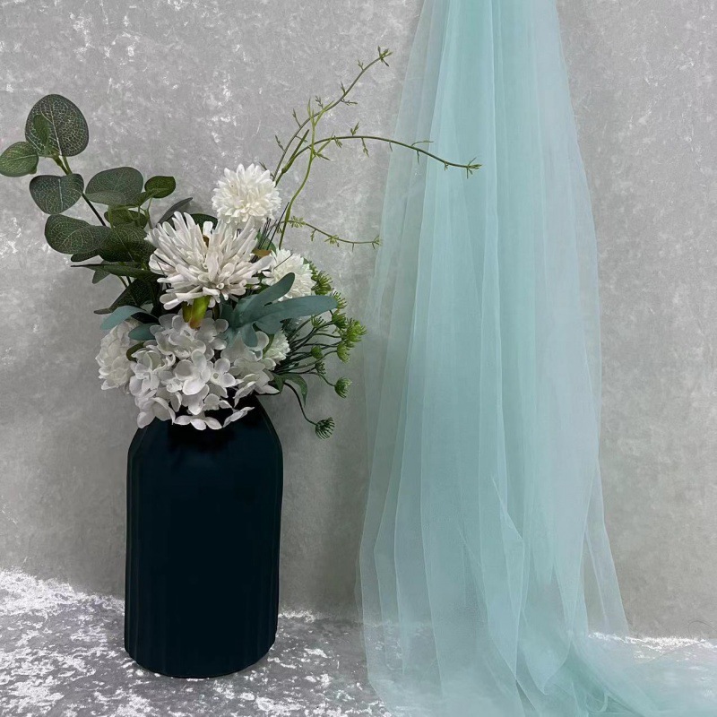 녹색 원사 직물 부드러운 원사 배경 베일 소프트 암호화 된 메쉬 거즈 한푸 원단 투명 웨딩 원피스 단색 원단