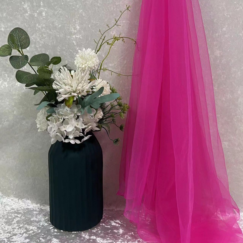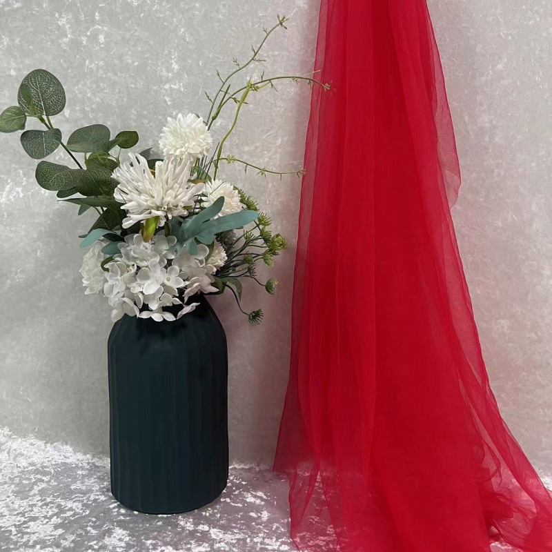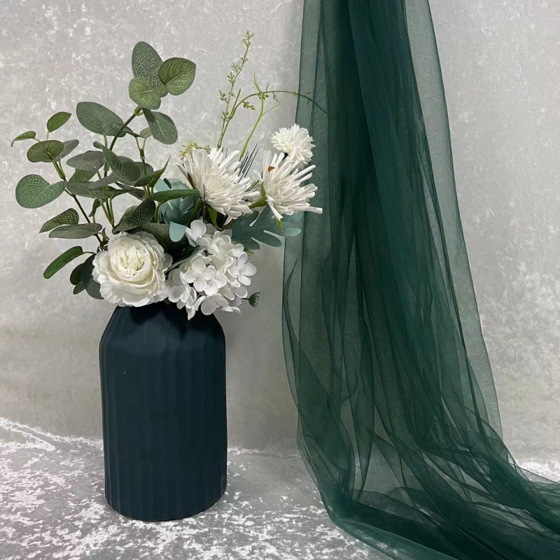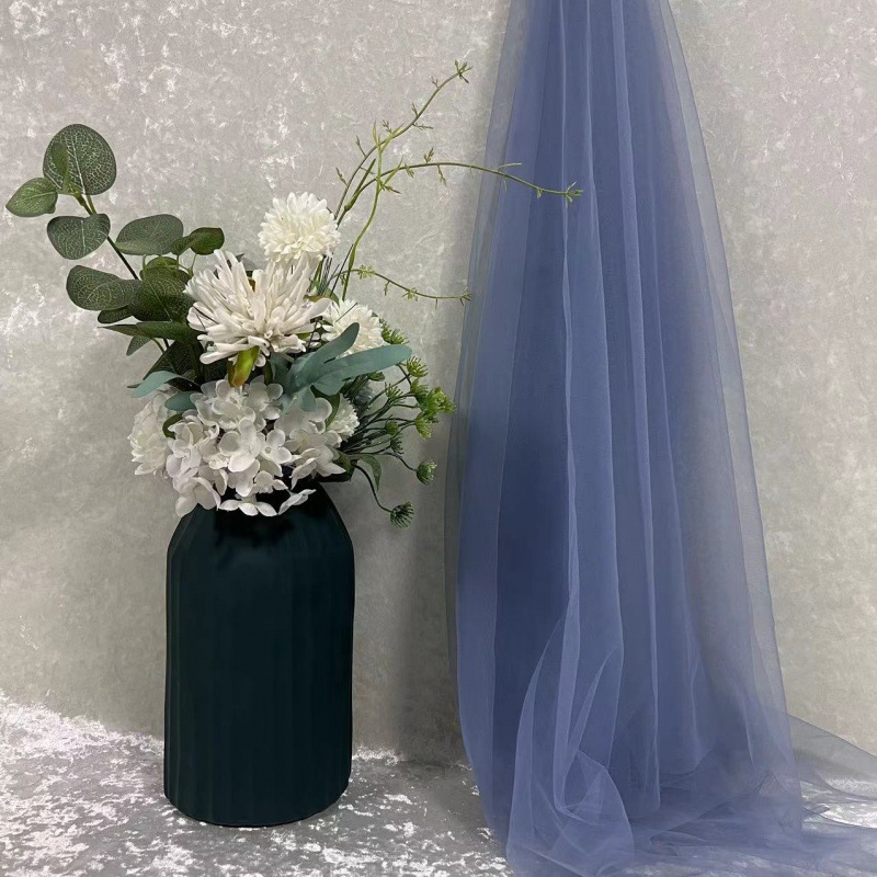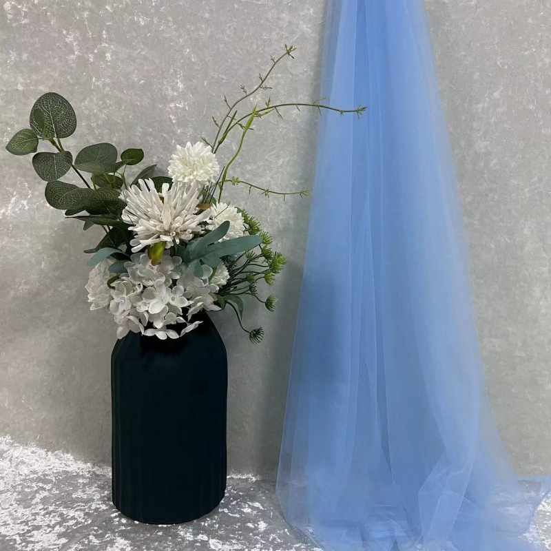 녹색 원사 직물 부드러운 원사 배경 베일 소프트 암호화 된 메쉬 거즈 한푸 원단 투명 웨딩 원피스 단색 원단