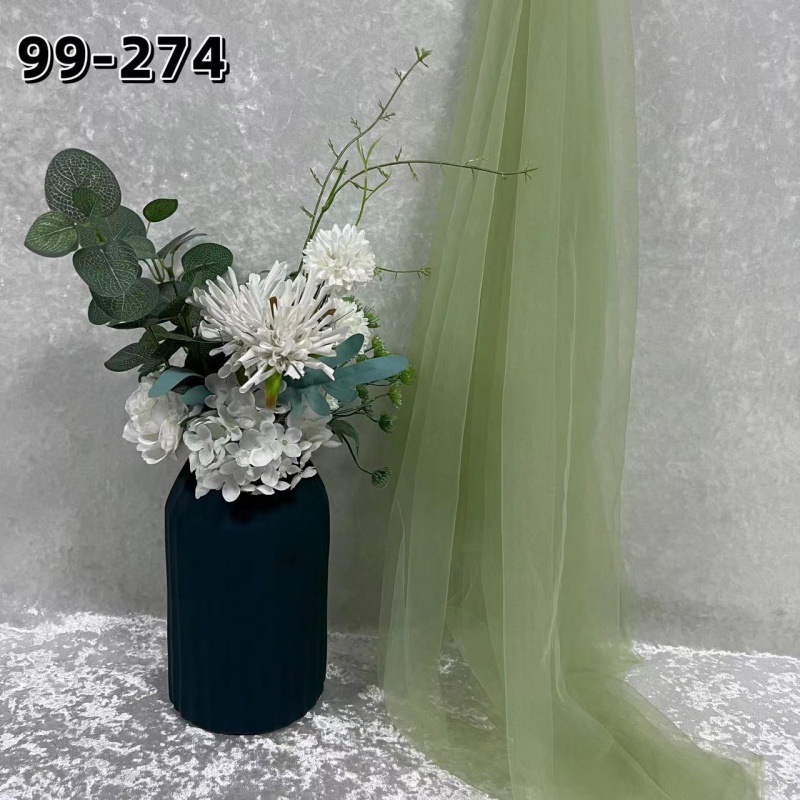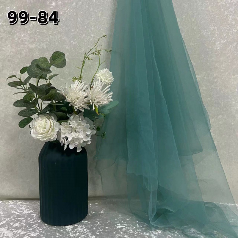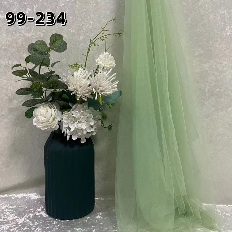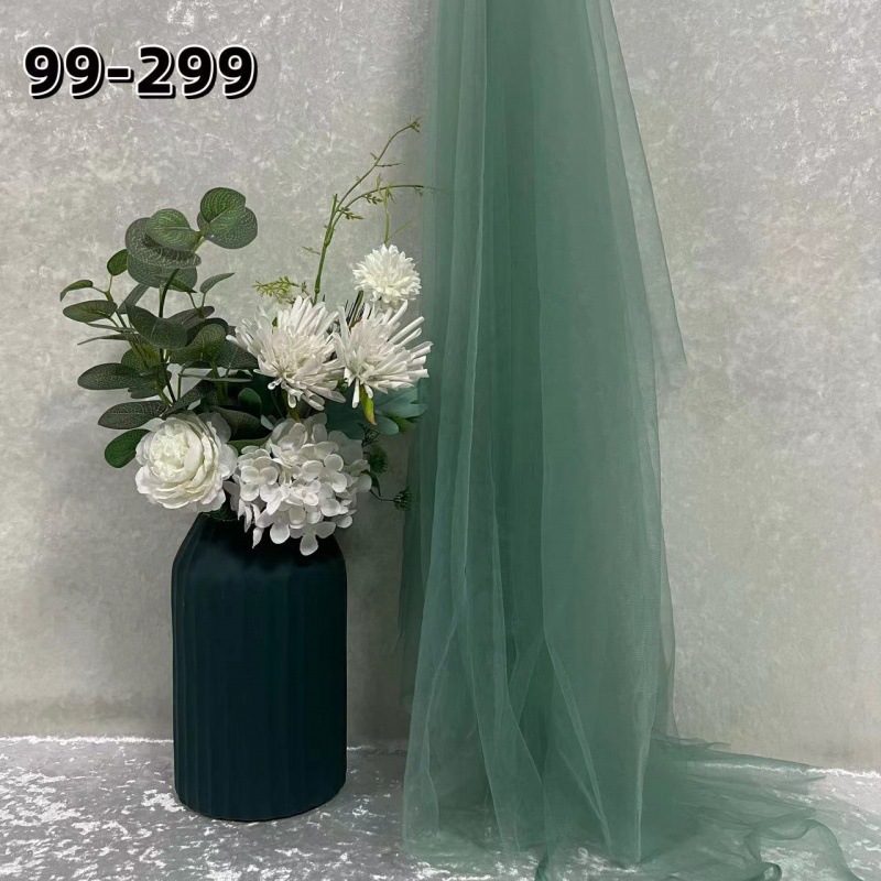 녹색 원사 직물 부드러운 원사 배경 베일 소프트 암호화 된 메쉬 거즈 한푸 원단 투명 웨딩 원피스 단색 원단스토어 가기