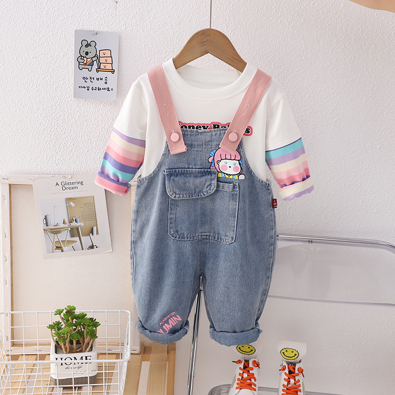 아기 소녀의 가을 스트랩 세트 서양식 새로운 아기 어린이 의류 소녀의 봄과 가을 긴 소매 땀 투피스 세트스토어 가기