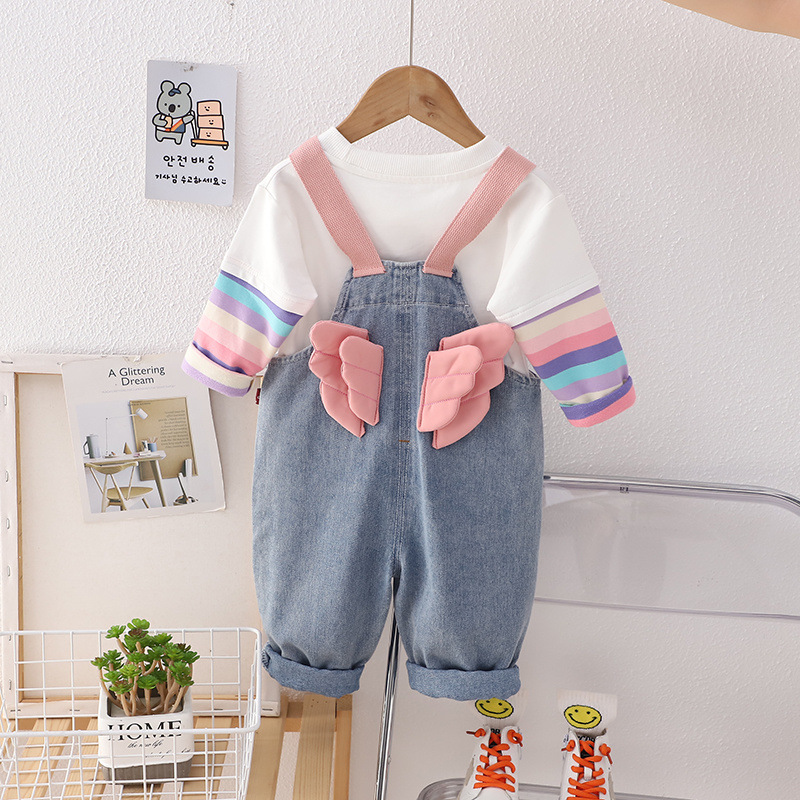 • 핑크 식스 리틀 베어 윙 데님 서스펜더 긴팔 슈트