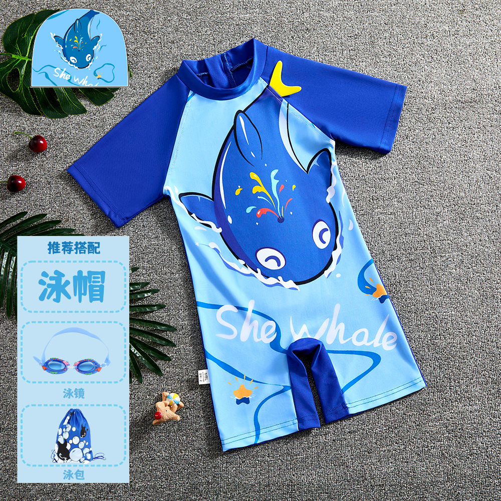 어린이 수영복 소년 2025 여름 새 원피스 선스크린 중형 어린이와 소년 해변 만화 수영복 장비