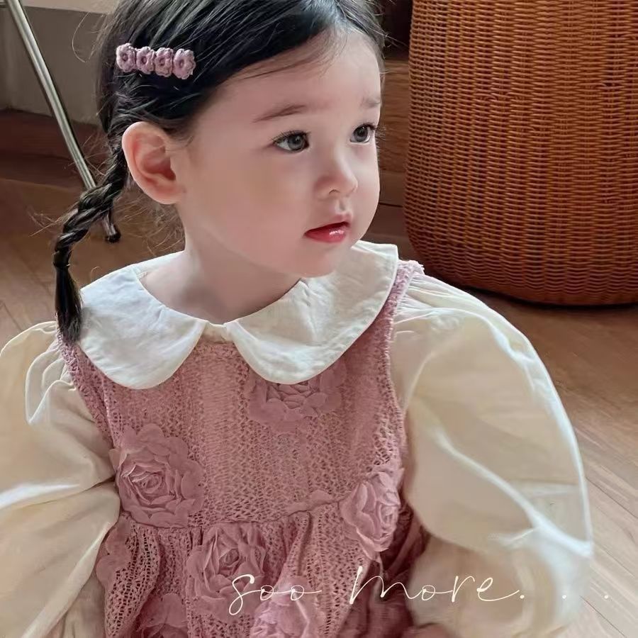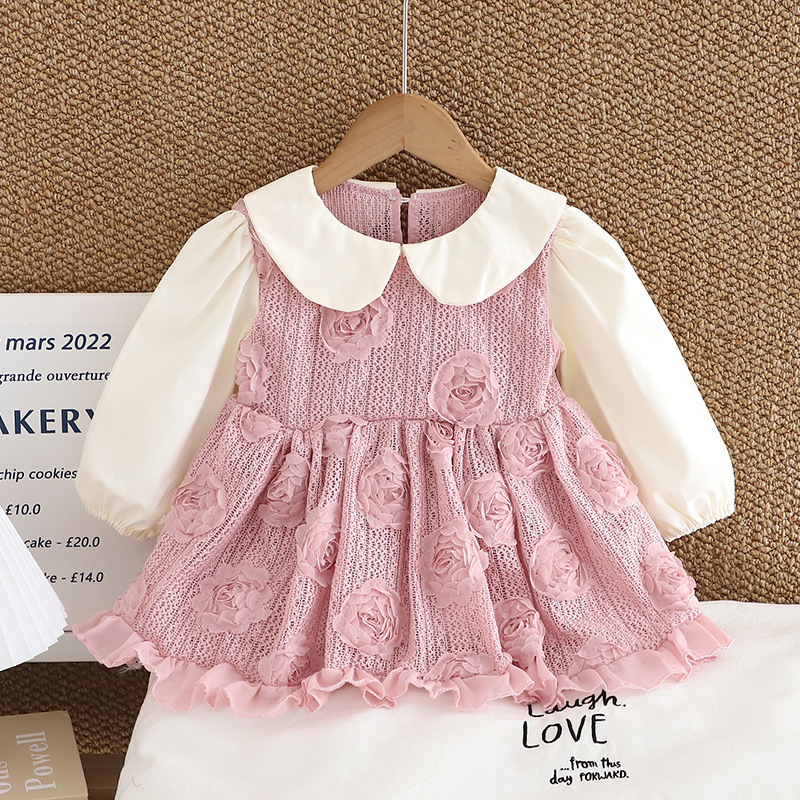 달콤한 3 차원 꽃 원피스 아기 소녀 2025 샤넬 스타일 공주 아기 소녀 레이스 가을 서양식 원피스
