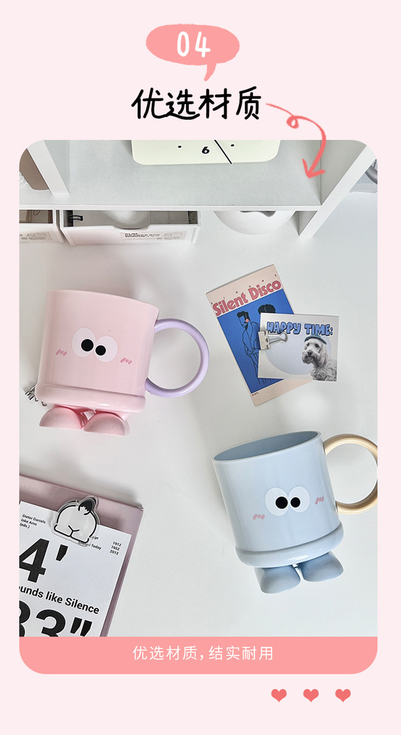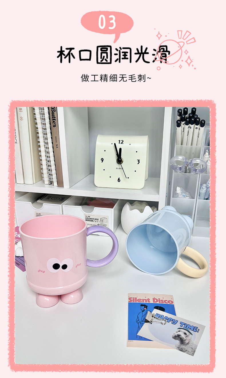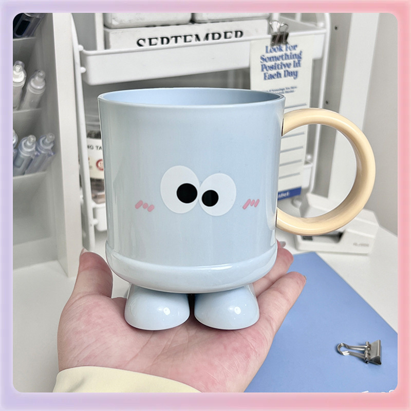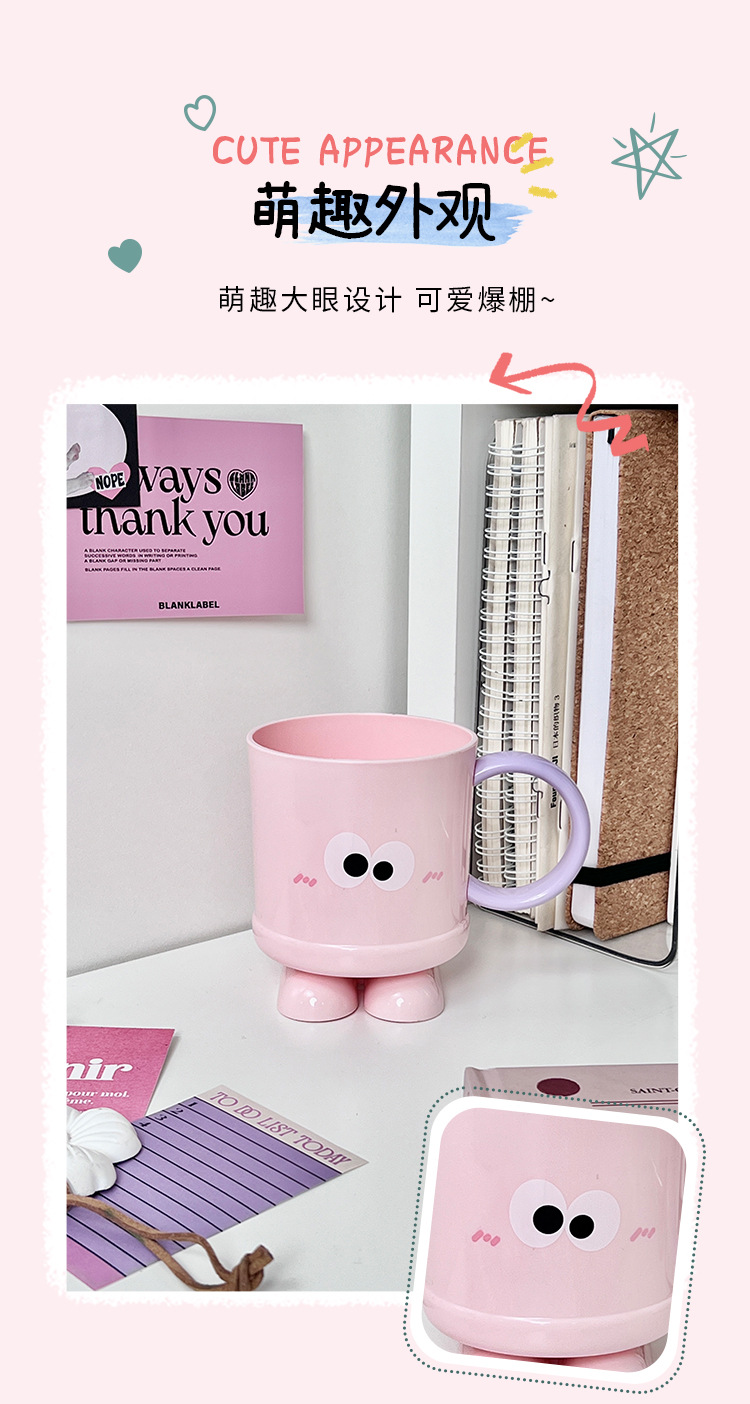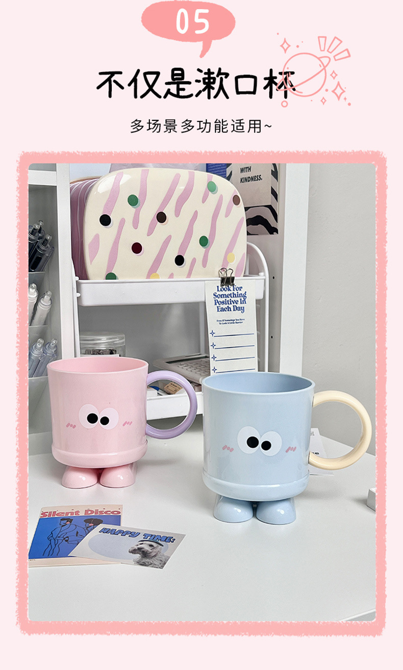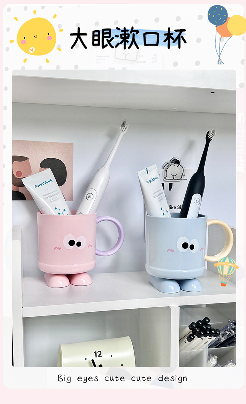 ✅[큰 눈] 고블릿 가글컵 만화 칫솔 컵 화장실 커플 입 컵 손잡이로 두꺼운 대용량스토어 가기