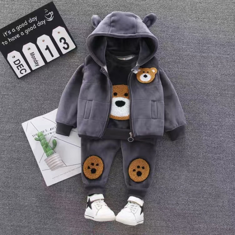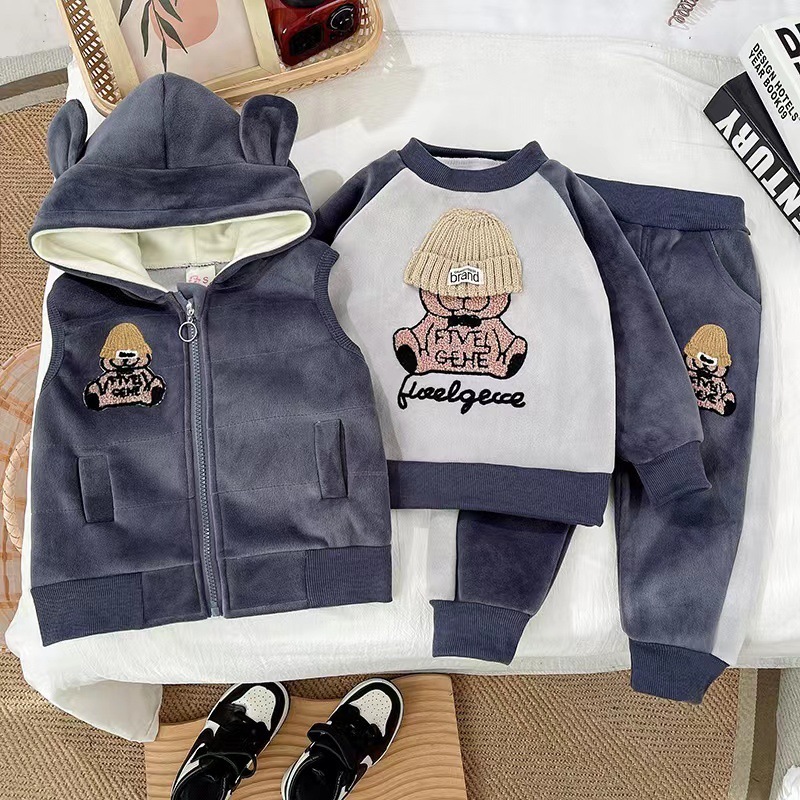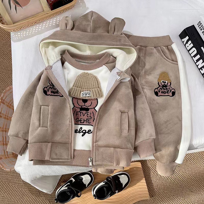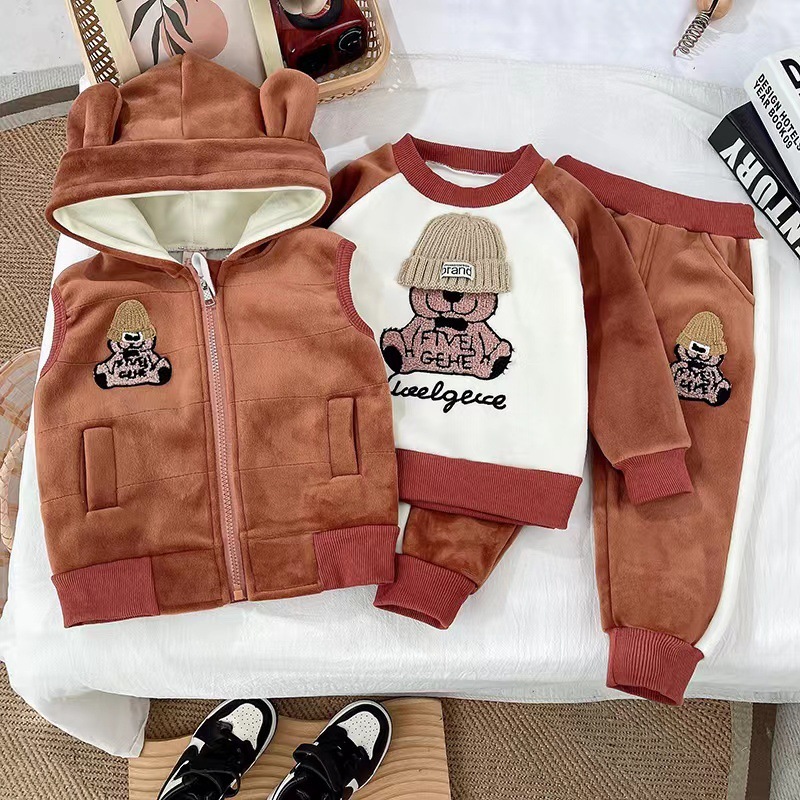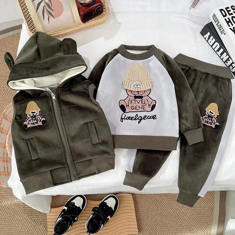 • 입체적인 곰카키 벨벳 쓰리피스 세트