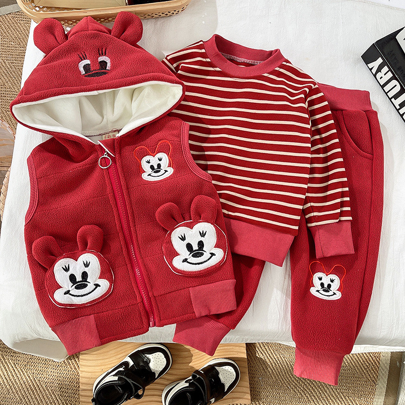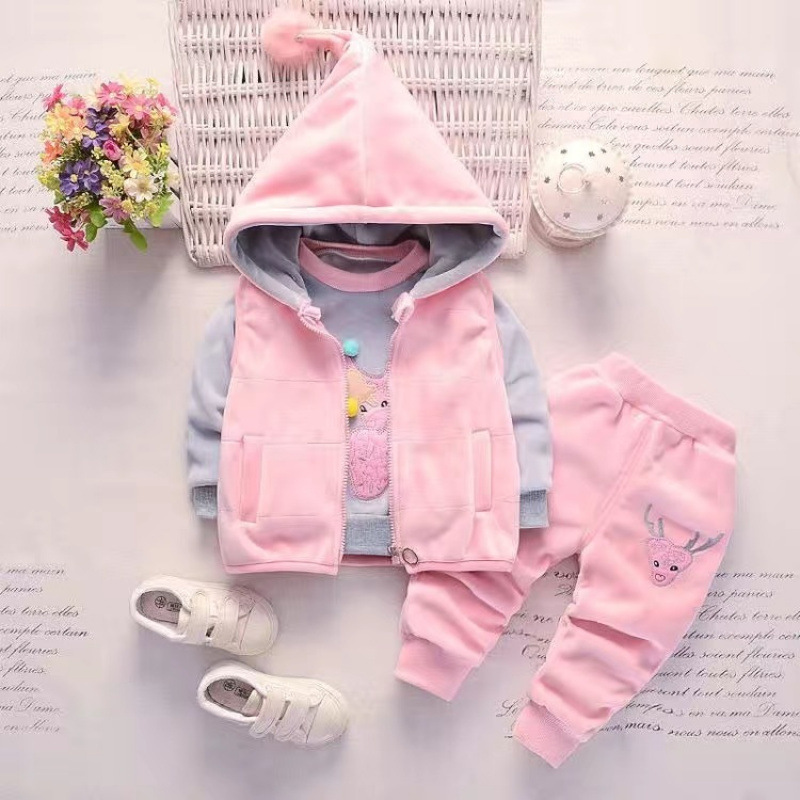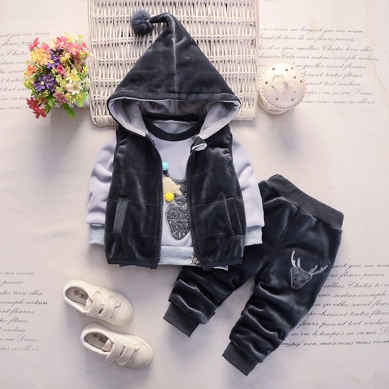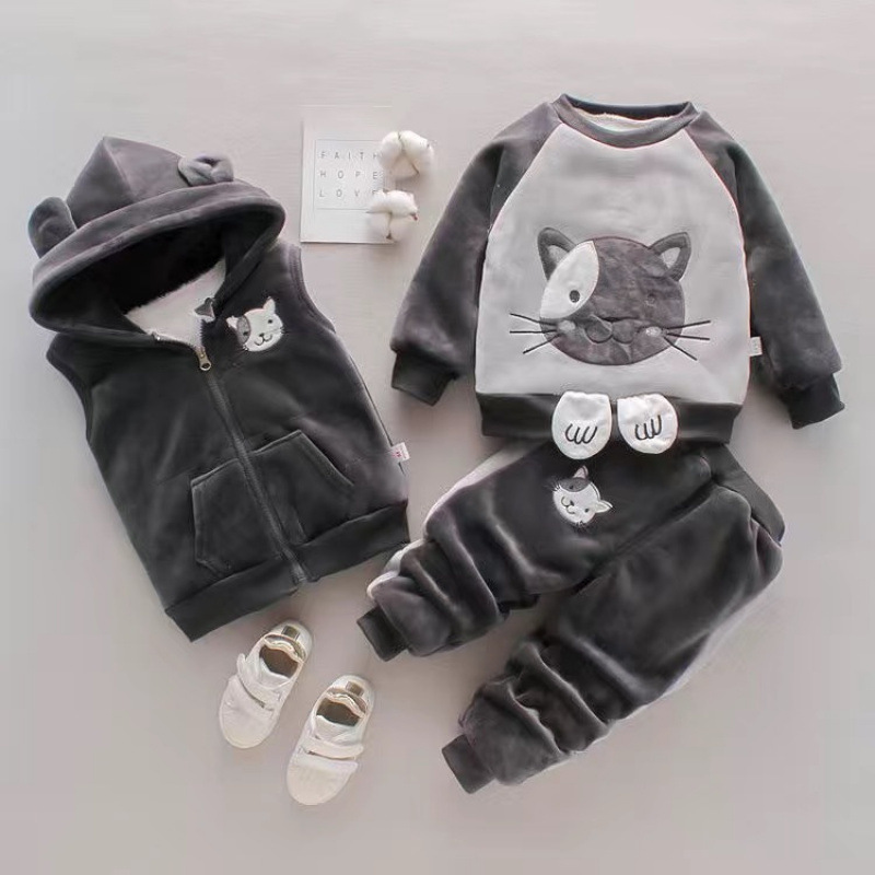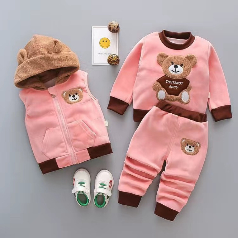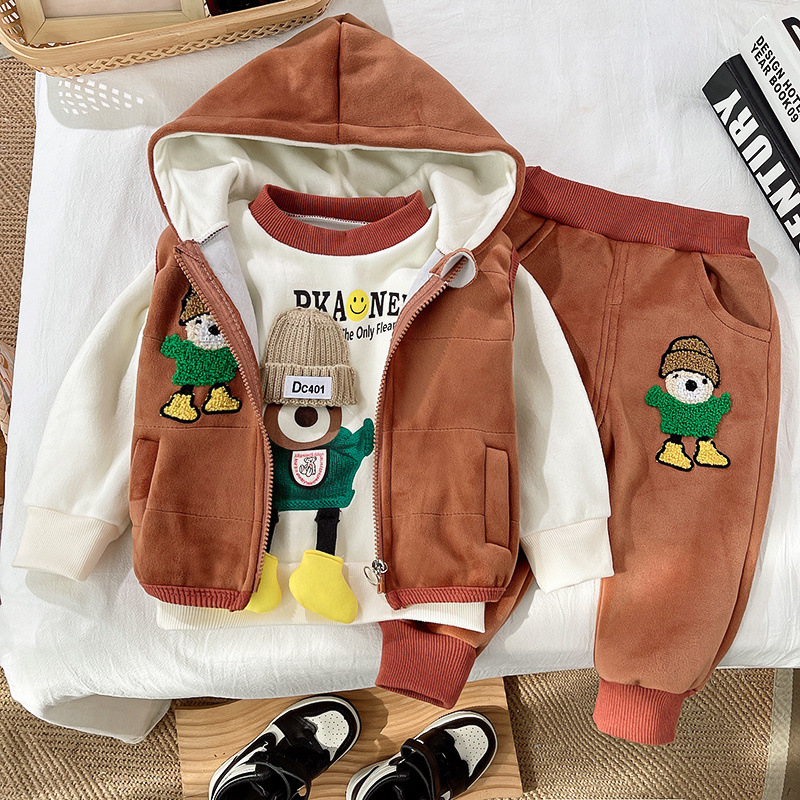 • 입체적인 곰카키 벨벳 쓰리피스 세트