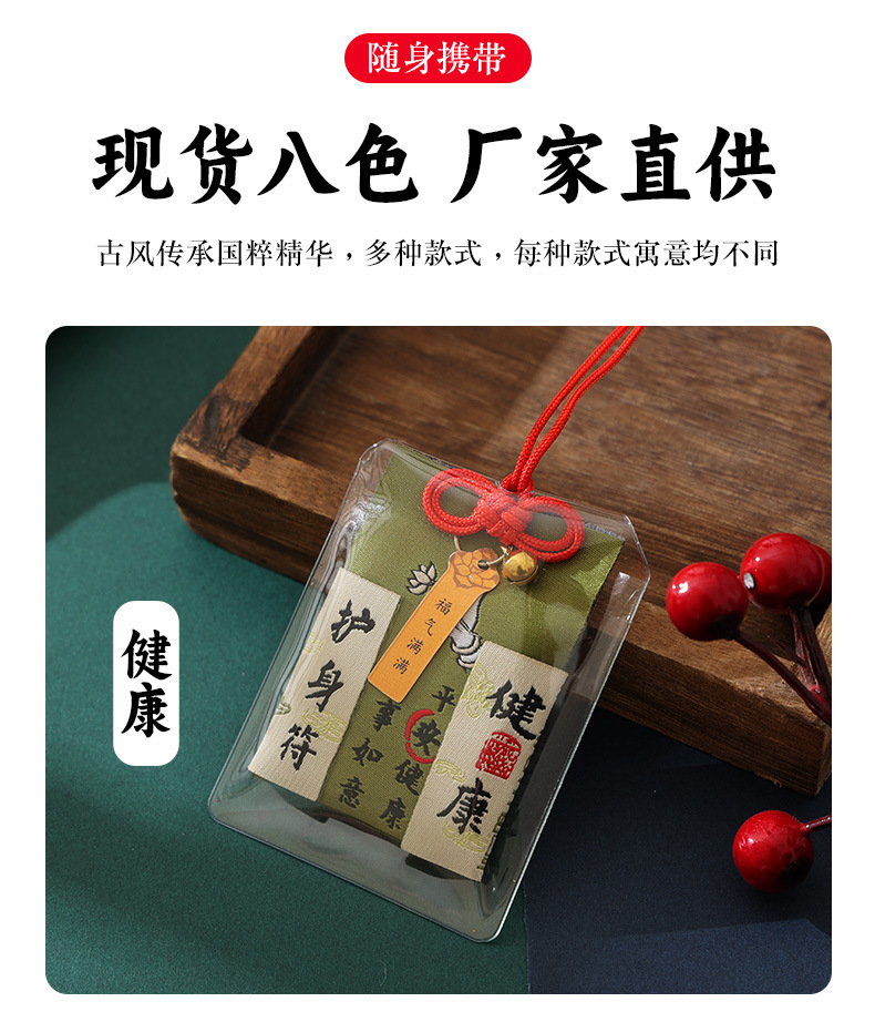 ⇡ 새로운 고대 스타일 사원 오쿠마 푸토산 경치 좋은 장소 복주머니 패치 향 주머니 부적 펜던트 안전 부적 가방 배치스토어 가기