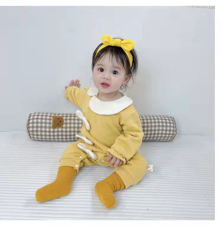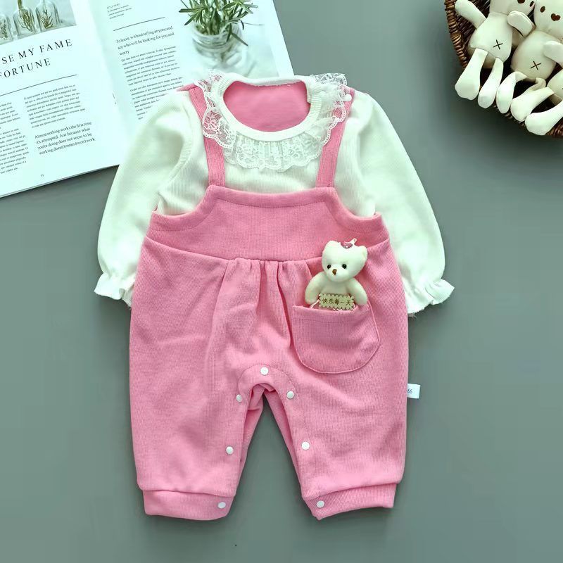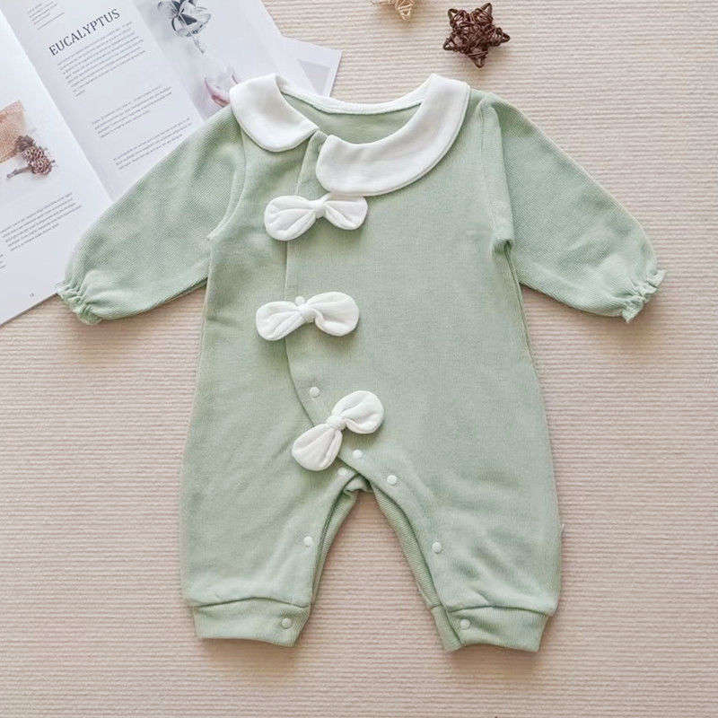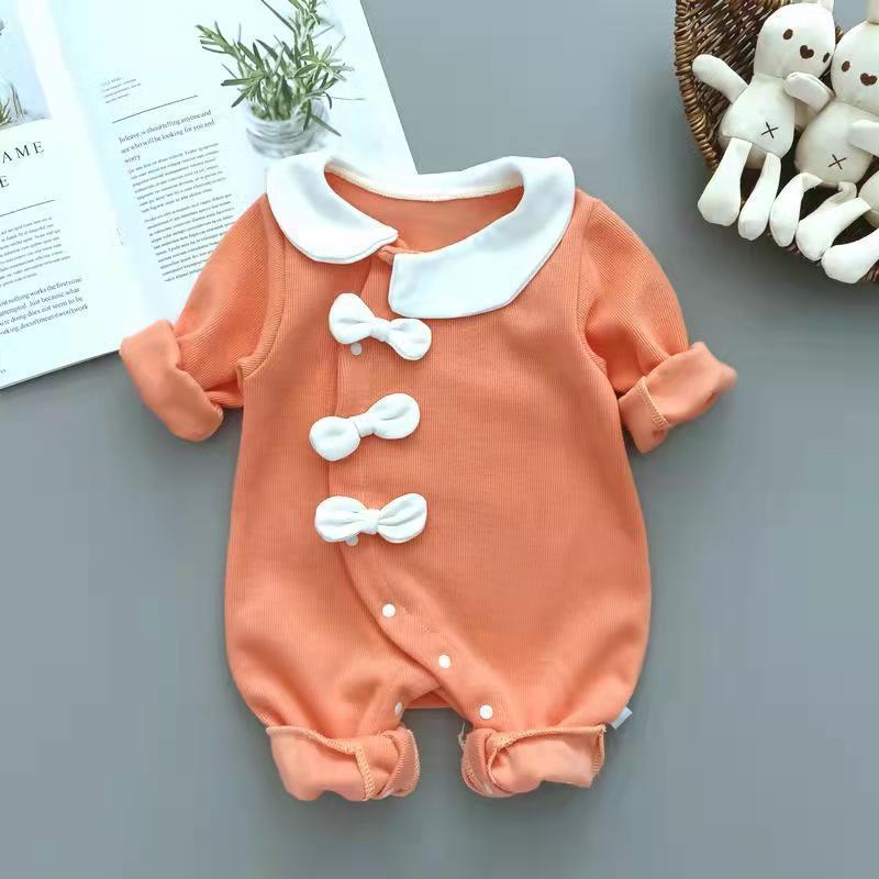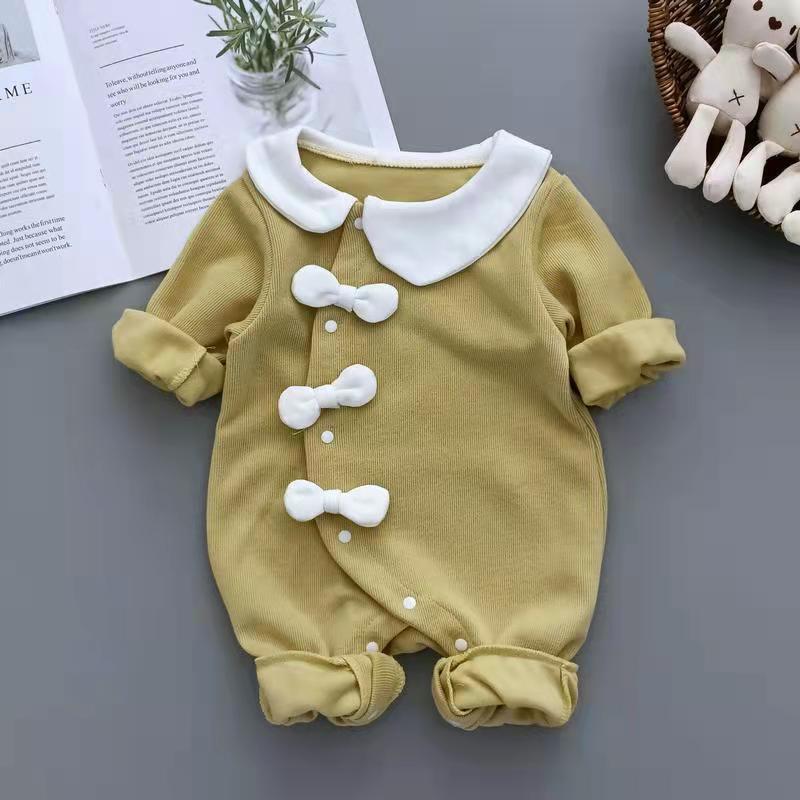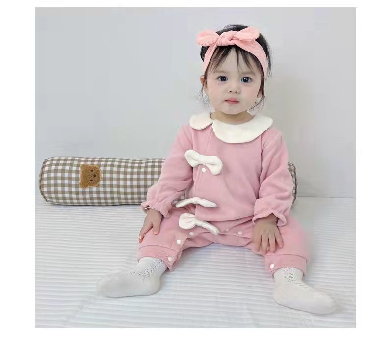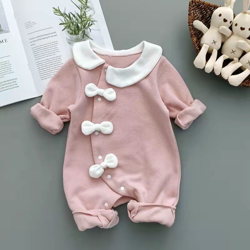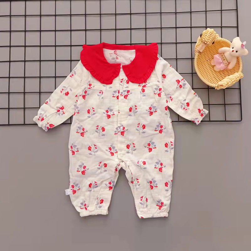 신생아 봄 옷 소녀와 아기를위한 원피스 옷 봄과 가을 슈퍼 외국식 하얼빈 옷 등반 옷 1 년 된 보름달 부분 수건 아기 옷