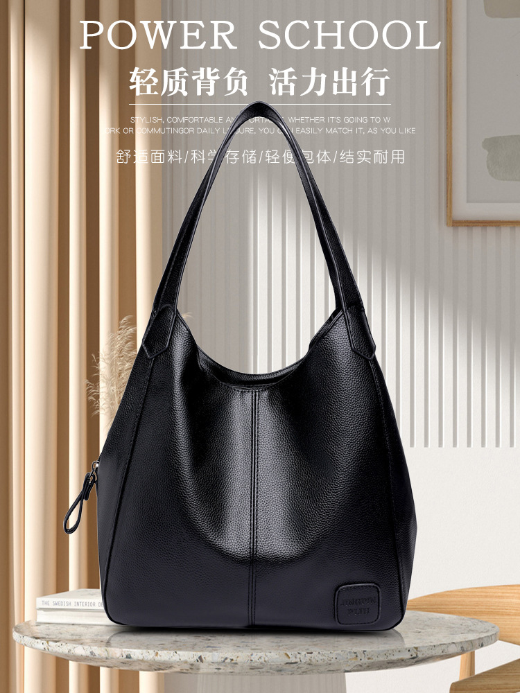 한국 스타일 대용량 소프트 가죽 버킷 백 2025 새로운 패션 캐주얼 통근 여성 핸드백 올 매치 숄더 백