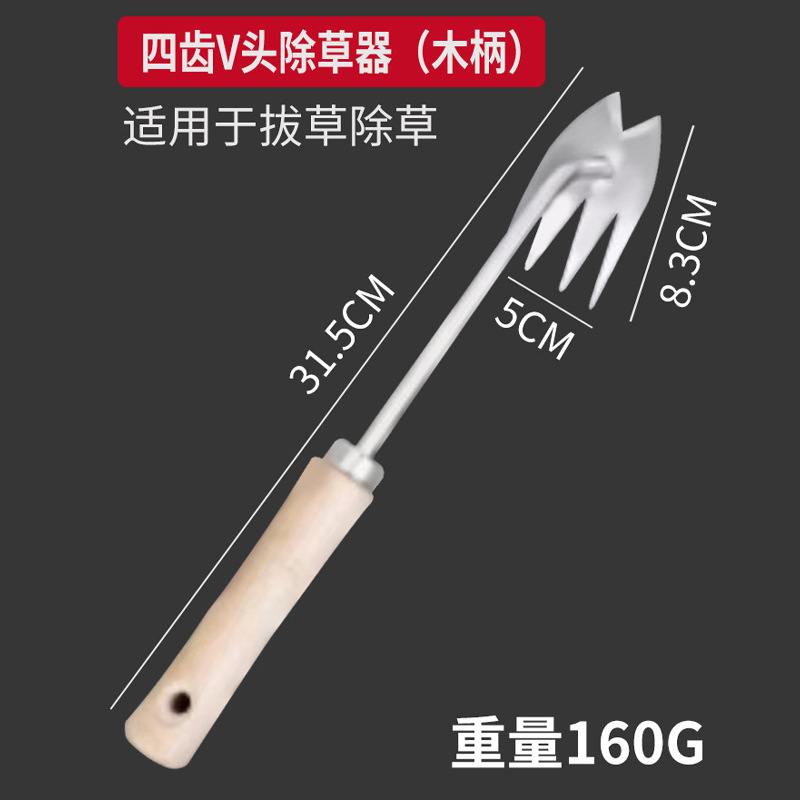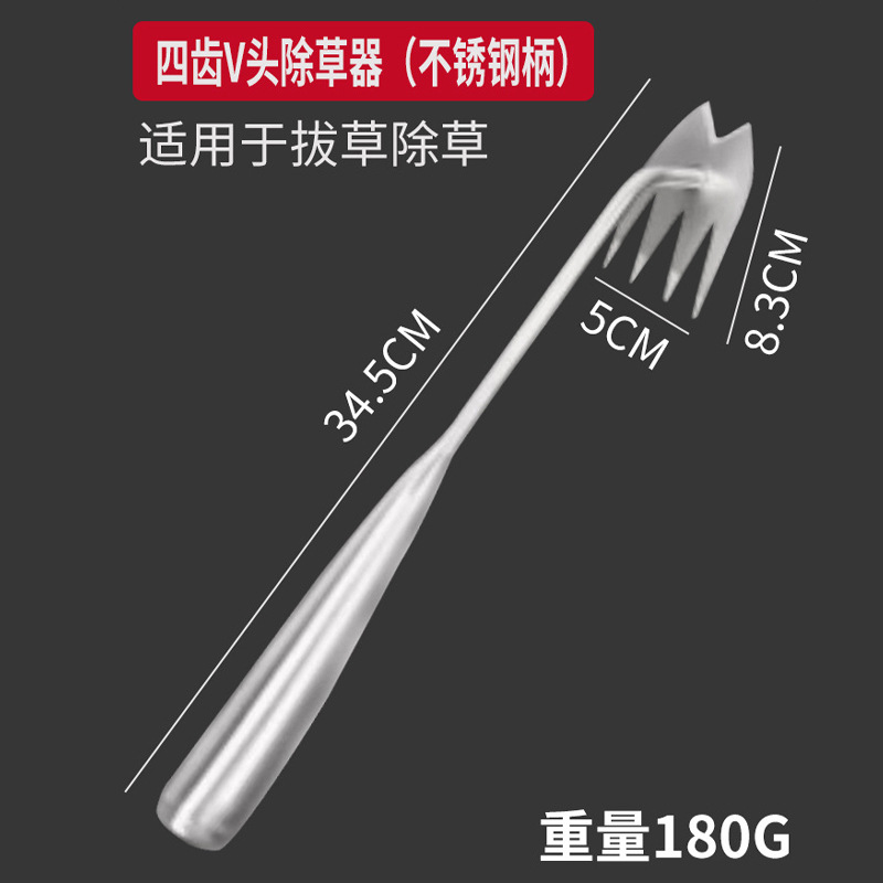 • 4개 톱니 V형 헤드 잡초 제거기(스테인리스 손잡이)