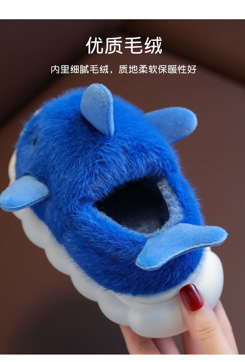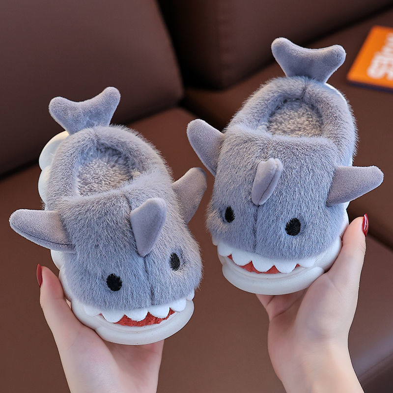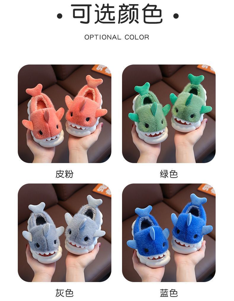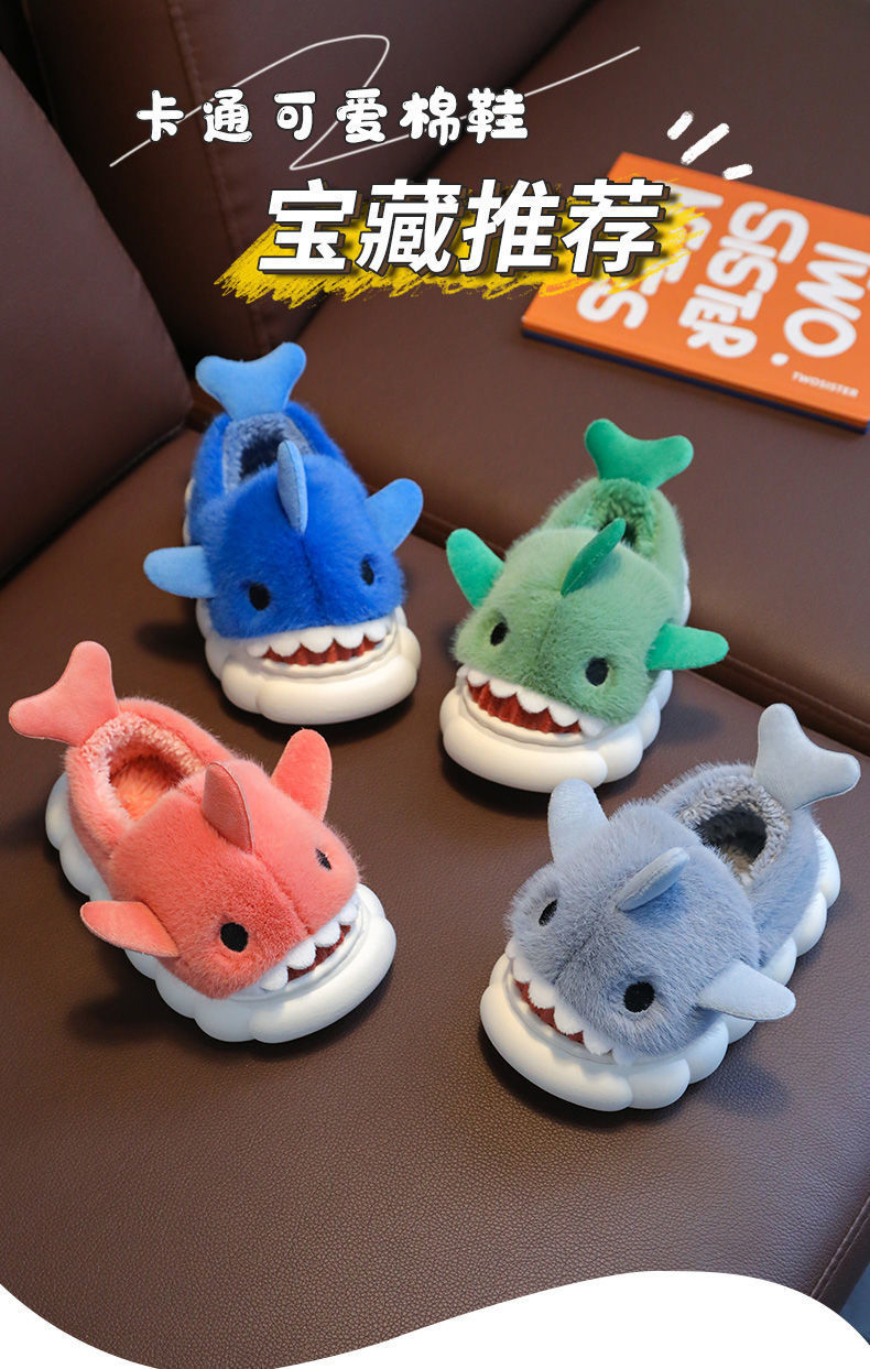 어린이 면화 슬리퍼 만화 상어면 신발 소년과 소녀 아기 실내 미끄럼 방지 따뜻한 부드러운 바닥 겨울 면화 슬리퍼를 추가